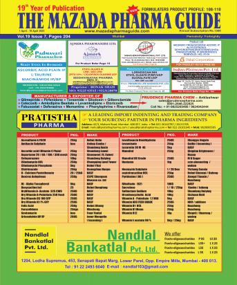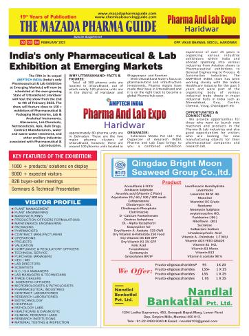 19th Years of Publication HALL NO. 11, PRAGATI MAIDAN, NEW DELHI. 18 19 AUGUST 2023 www.mazadapharmaguide.com www.chemicalsourcingguide.com