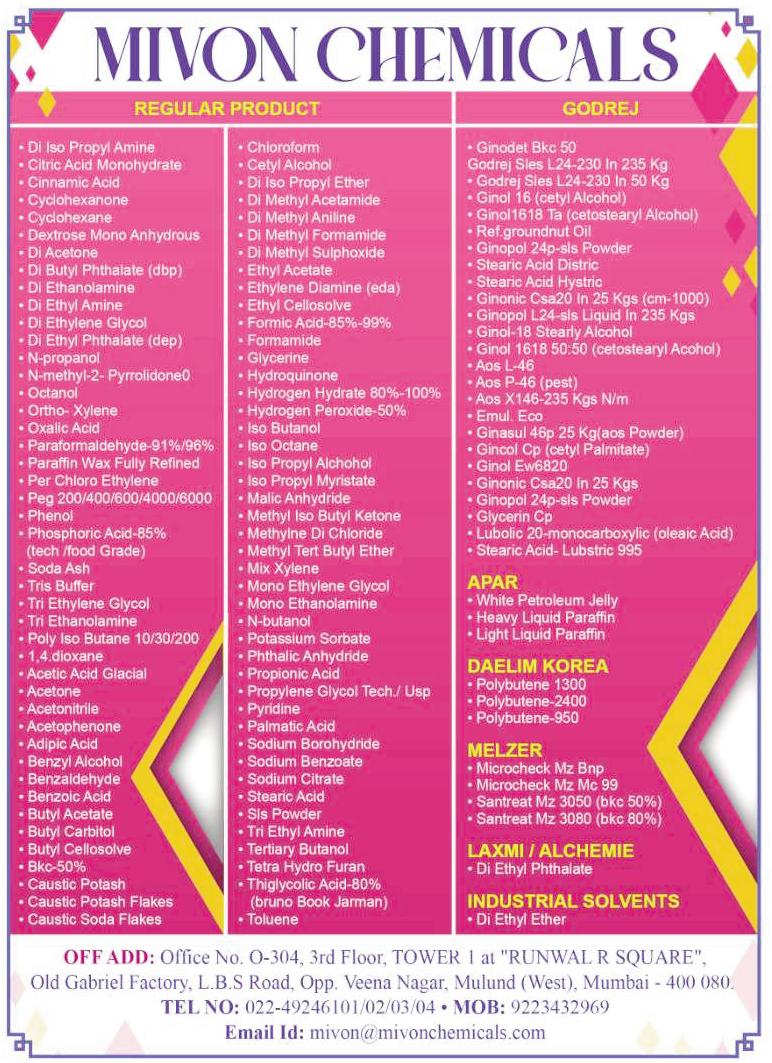 : MR. MITUL MEHTA Cell : +91 9920367128 mitul@mahaveerchemical.com