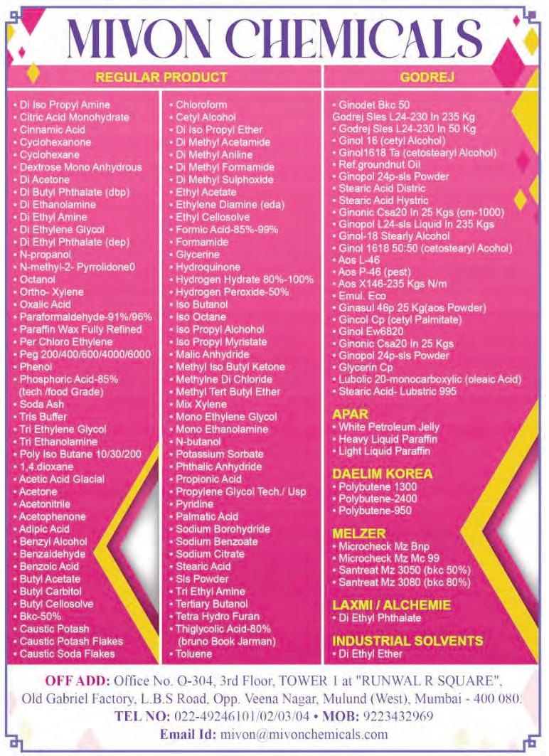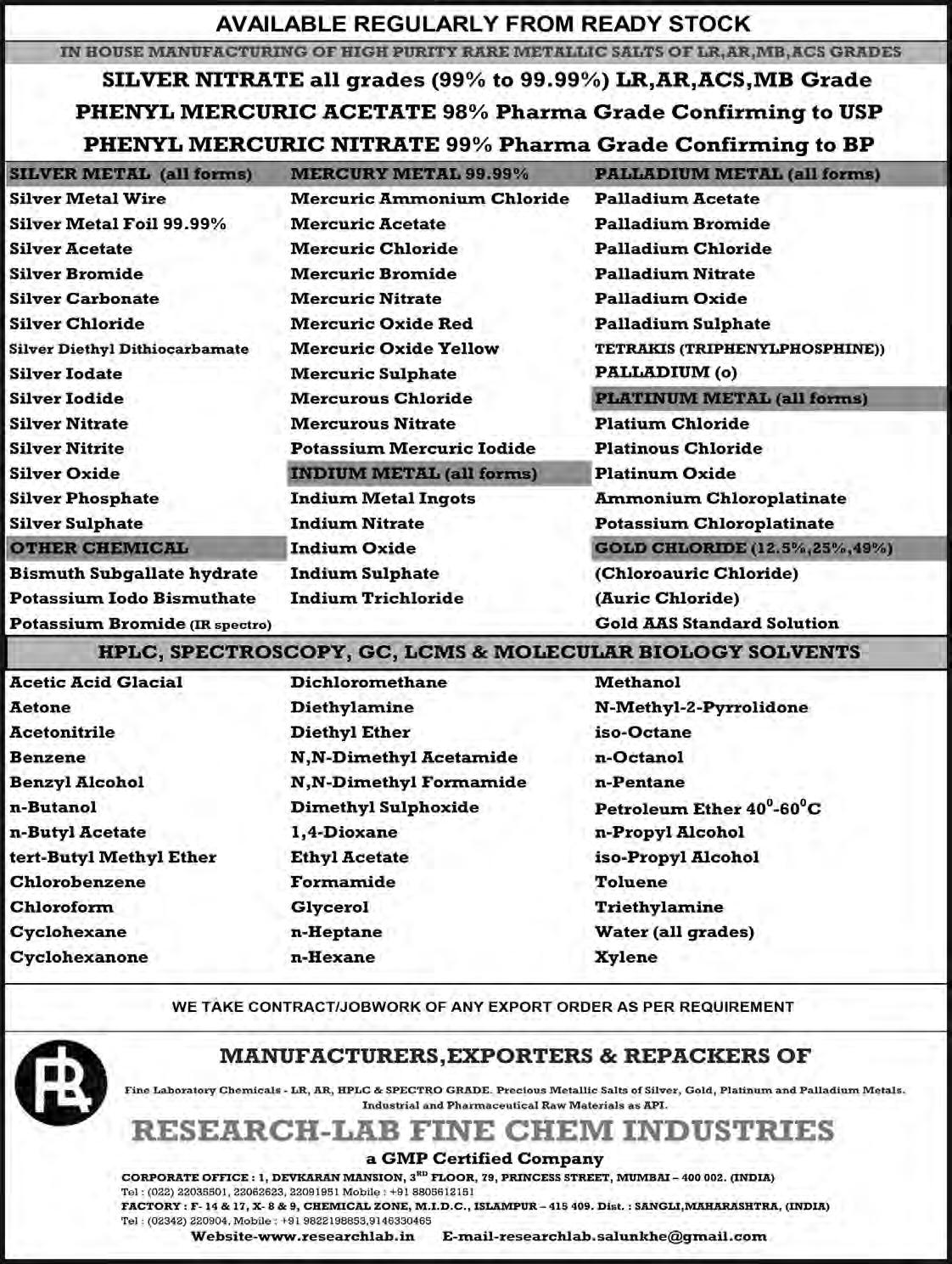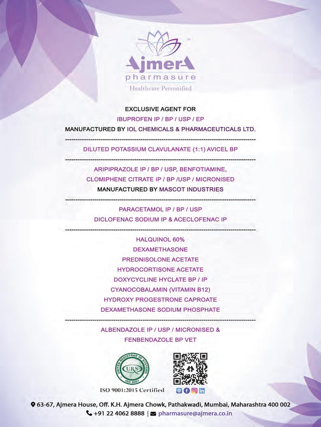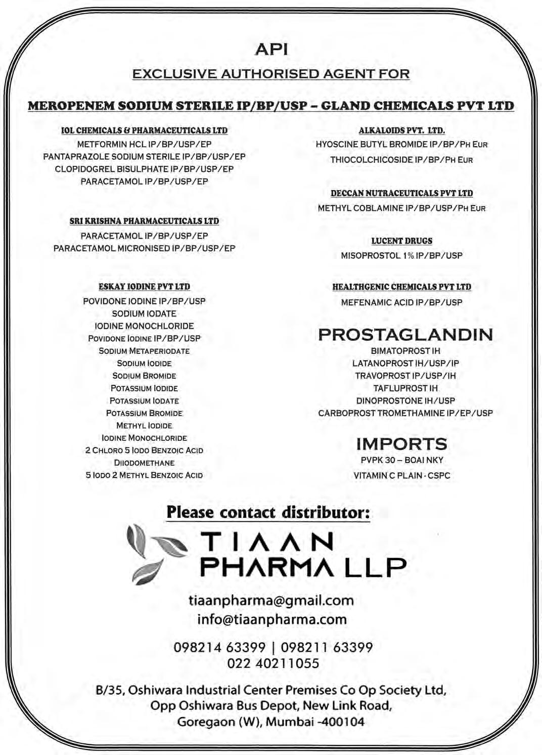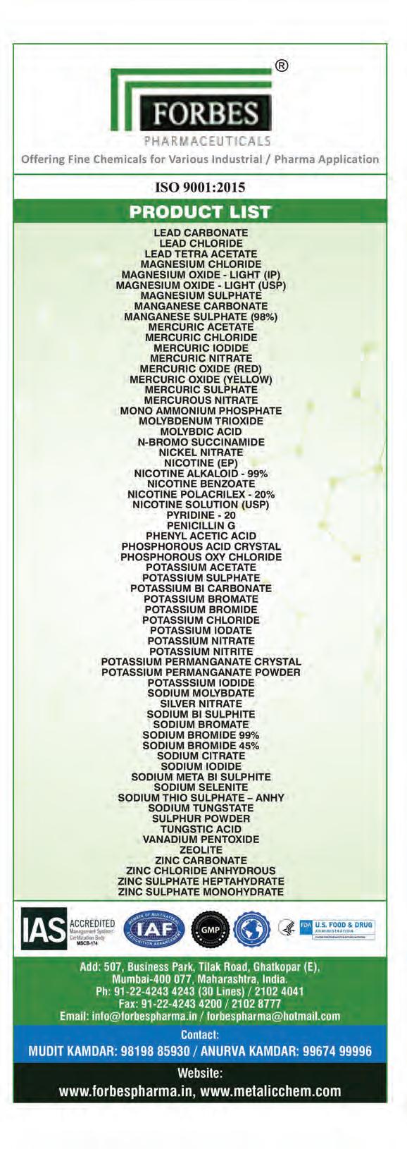 Vol.19 Issue 13, Pages 204 Manufacturing & Exporting Superior Quality Precious Metal Chemicals, Compounds of Rhodium, Gold, Silver, Palladium, Platinum, Iridium, Osmium, Ruthenium, Indium, Bismuth, Molybdenum Etc. INdIAN PlATiNUM PVT. LTd. Email: indianplatinum@gmail.com For Product Refer Page No. 158 LORNOXICAM INH ETHYL OLEATE IP/BP/USP SUCRALFATE USP With GMP and DMF For More Products Please Visit Page No. 29 marketing@progresslifesciences.com +91 22 4978 1414 Manufacturer and Exporter of P PR RO OG GR RE ES SS S LI IFFE E S SCCIIEENNCCEES S P PVVT T L LT TD www.mazadapharmaguide.com 1 July - 15 July 2023 PRUDENCE PHARMA CHEM – Ankleshwar sales@prudencepharma.com 0091-2646-222825 Cell No: + 91-9825205460 / 9624042444 MANUFACTURER & EXPORTER OF ll RIVAROXABAN l MEMANTINE l SILODOSIN l l GLIMEPIRIDE l TORSEMIDE l FEBUXOSTAT l l GLIBENCLAMIDE l CELECOXIB l l ETORICOXIB l l LEVAMLODIPINE l l PIRFENIDONE