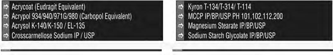 202 SPECIALITY PRODUCTS l l l l l l l SPECIALITY PRODUCTS l l l l l l l TI COMPENDIAL AILABLE IN GRADES : IP / BP / USP/ EP/ FCC/ MUL AVA