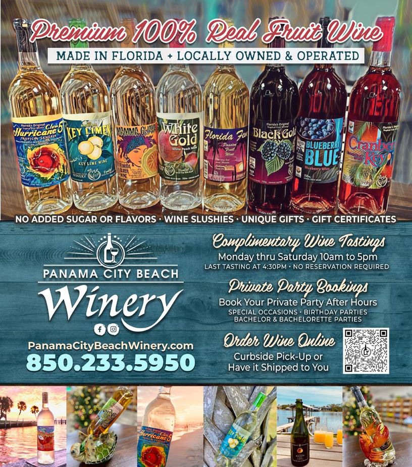 SCAN ME VIEW FULL MENU, READ REVIEWS, & MUCH MORE! Open Mon - Sat 10am to 5pm Average Price: $20-$30 Pet Friendly • Live Music Shipping • Outdoor Seating Allergen Menu Options Service: Winery Wine Service Private Bookings AvailableF-8 PanamaCityBeachWinery.com (850) 233-5950 8730 Thomas Dr #1103B, Panama City Beach, FL 32408 Panama City Beach Winery 9 9