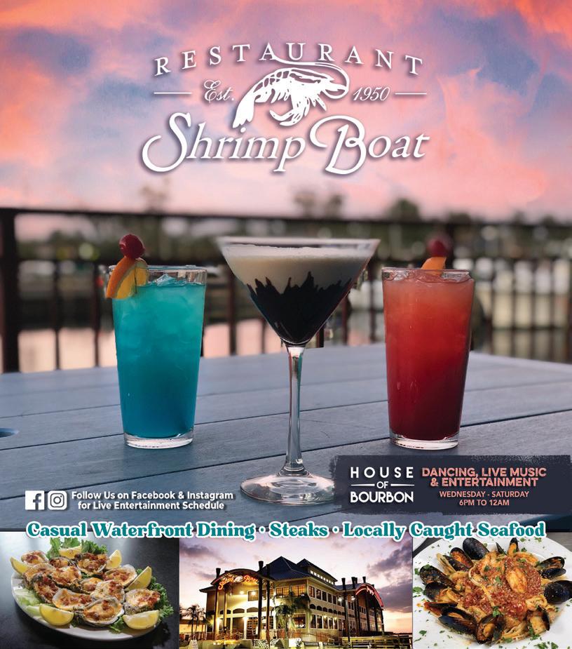 SCAN ME VIEW FULL MENU, READ REVIEWS, & MUCH MORE! Open Every Day 4pm to 9pm Average Price: $15-$25 Pet Friendly • Live Music Delivery • Outdoor Seating Allergen Menu Options Service: Dinner Full Service Bar Happy Hour: DailyF-11 ShrimpBoatPC.com (850) 785-8706 1201 Beck Avenue Panama City, FL 32401 Shrimp Boat RAW OYSTERSPEPPER CRUSTED TUNA KEY WEST SHRIMPBLACK & BLEU CHICKEN SALAD 27 27
