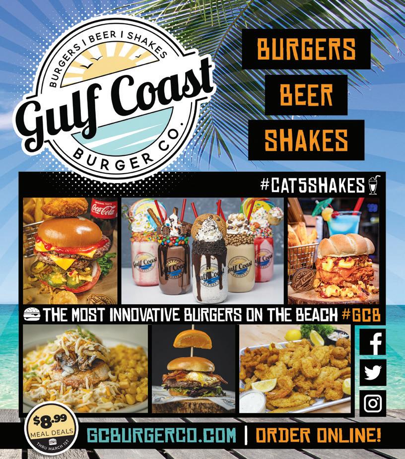 Gulf Coast Burger Co. GCBurgerCo.com E-7 Average Price: $10-$20 Pet Friendly • Live Music Delivery • Outdoor Seating Allergen Menu Options SCAN ME VIEW FULL MENU, READ REVIEWS, & MUCH MORE! Sun-Thurs 11am to 9pm Fri-Sat 11am to 10pm(850) 775-1312 Service: Brunch/Lunch/Dinner Full Service Bar Happy Hour: 3pm to 6pm 10031 Hutchison Blvd Panama City Beach, FL 32407 14 14