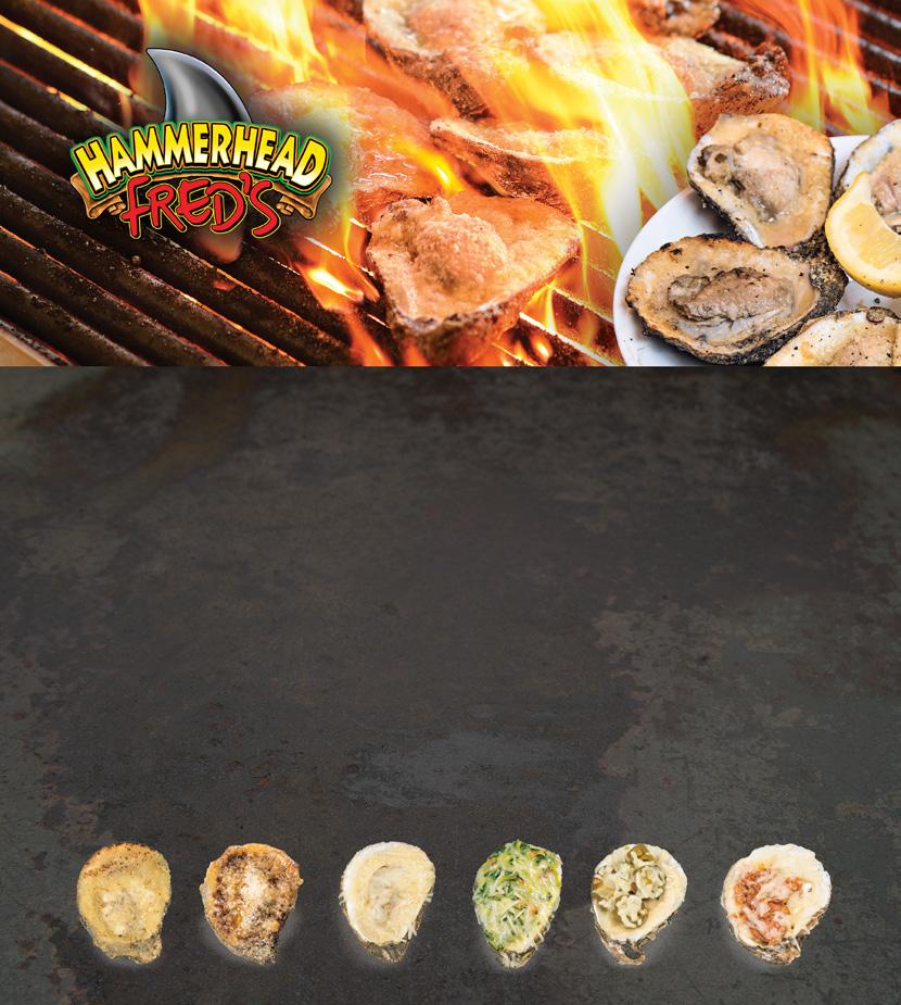 VIEW FULL MENU, READ REVIEWS, & MUCH MORE! Open Daily at 11am Average Price: $10-$25 Pet Friendly • Live Music Delivery • Outdoor Seating Allergen Menu Options Happy Hour: N/AD-8 HammerheadFreds.com (850) 233-3907 8752 Thomas Dr, Panama City Beach, FL 32408 Hammerhead Fred’s Signature Char-Grilled Hurricane Oysters “Rockefeller” Baked Traditional Baked Cajun BakedJalapeño Baked CHECK OUT OUR WEBSITE HAMMERHEADFREDS.COM FOR OUR COMPLETE MENU