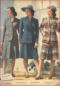 Both men and women were usually in uniform. The skirts of this decade were knee length and sleek.
