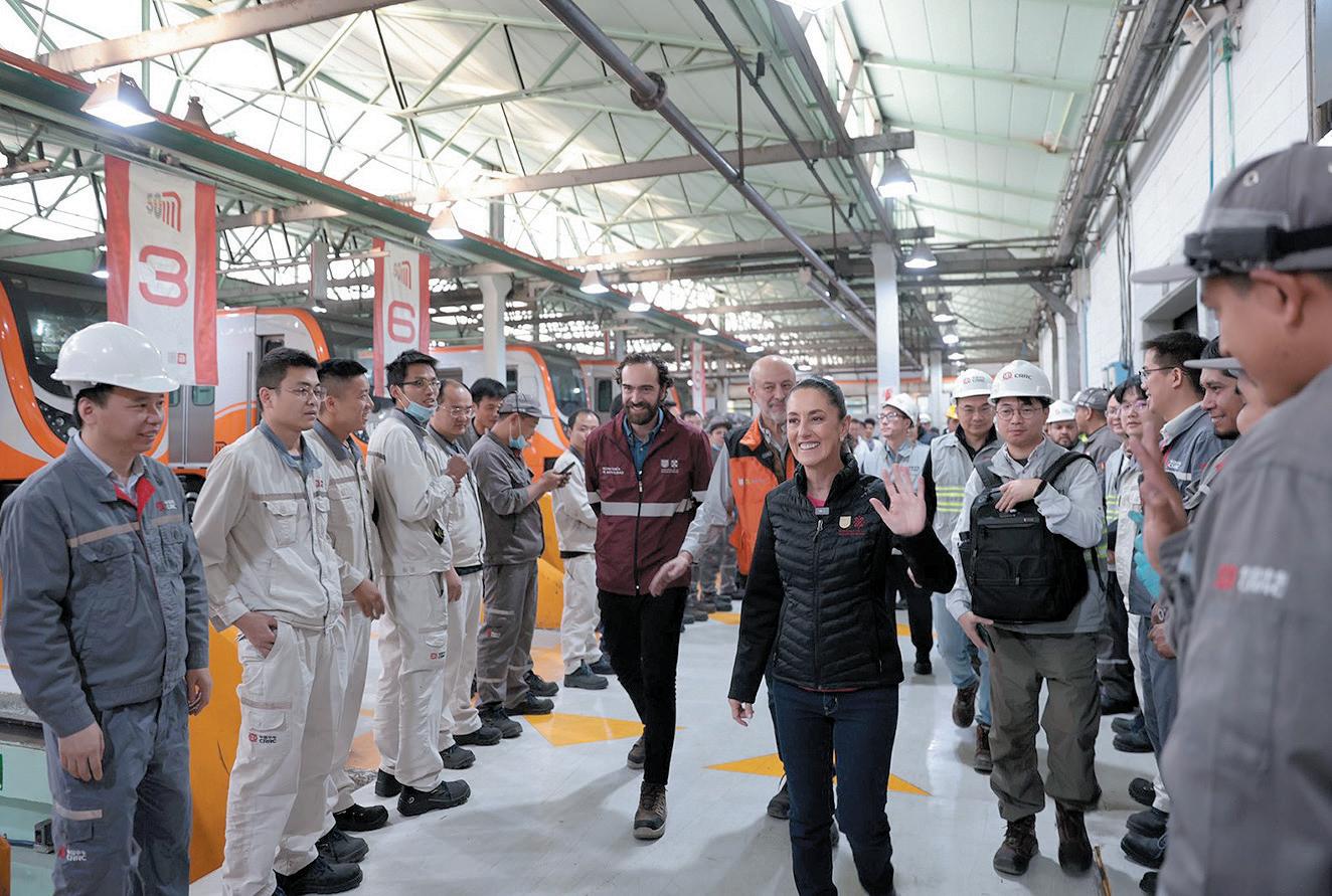 La jefa de Gobierno de la Ciudad de México, Claudia Sheinbaum, supervisó los trabajos de reconversión y equipamiento de 10 trenes NM16 en los Talleres de Mantenimiento Zaragoza. Lo anterior, como parte de los trabajos de modernización de la Nueva Línea 1 del Sistema de Transporte Colectivo (STC) Metro.