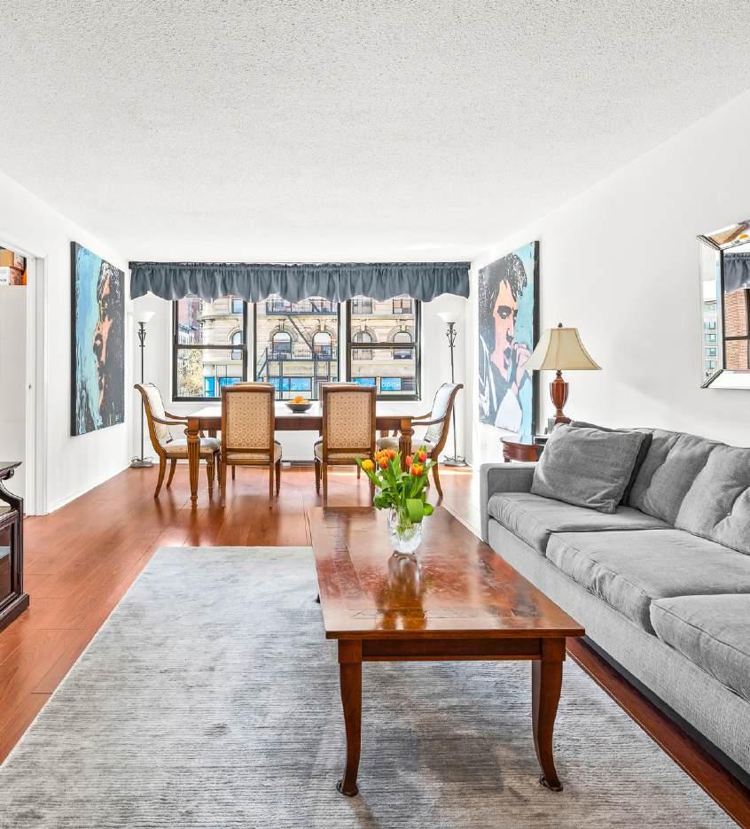 "The apartment is well-maintained and has good closets. Tucked in the back of the building, it’s quiet and has townhouse views through large windows. The maintenance includes all utilities."