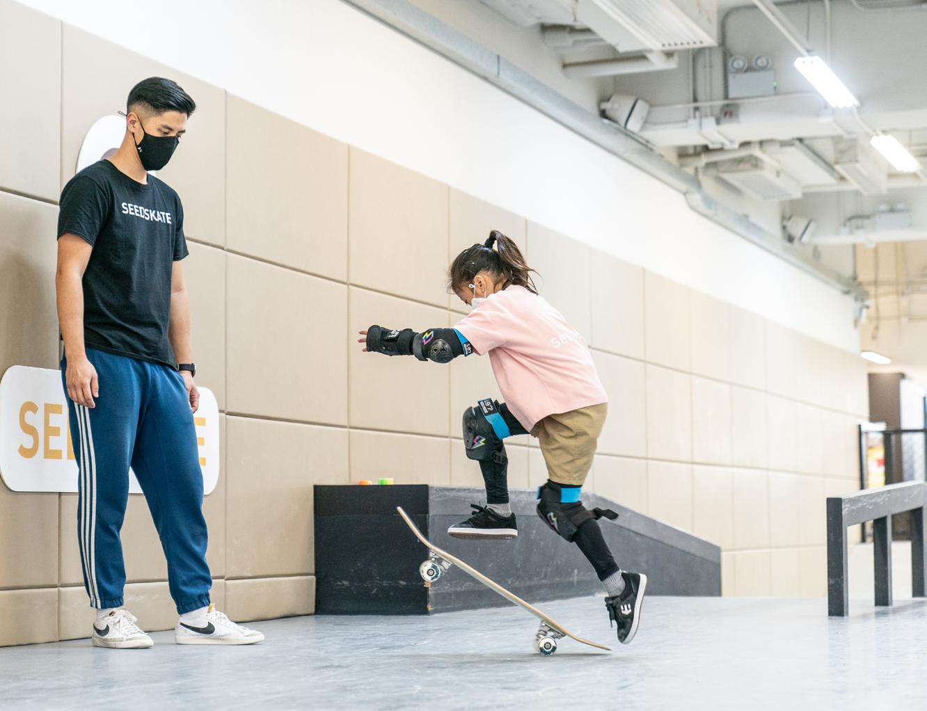 Q:SeedSkate舉辦不少親子班及兒童滑板體驗課程,為何有這個想法? J:老闆女兒喜歡玩滑板,所以深明作為父母的需要,便從這個方向出發。我們希望孩子從小開始正統地學習, 最低限度是能夠自如流暢地控制滑板,因此3至5歲的兒童都可以感受踏上滑板的感覺。部分課堂更鼓勵父母與 子女一起上堂,通過不同小遊戲及其他方法,令孩子對滑板產生興趣,繼續學習。