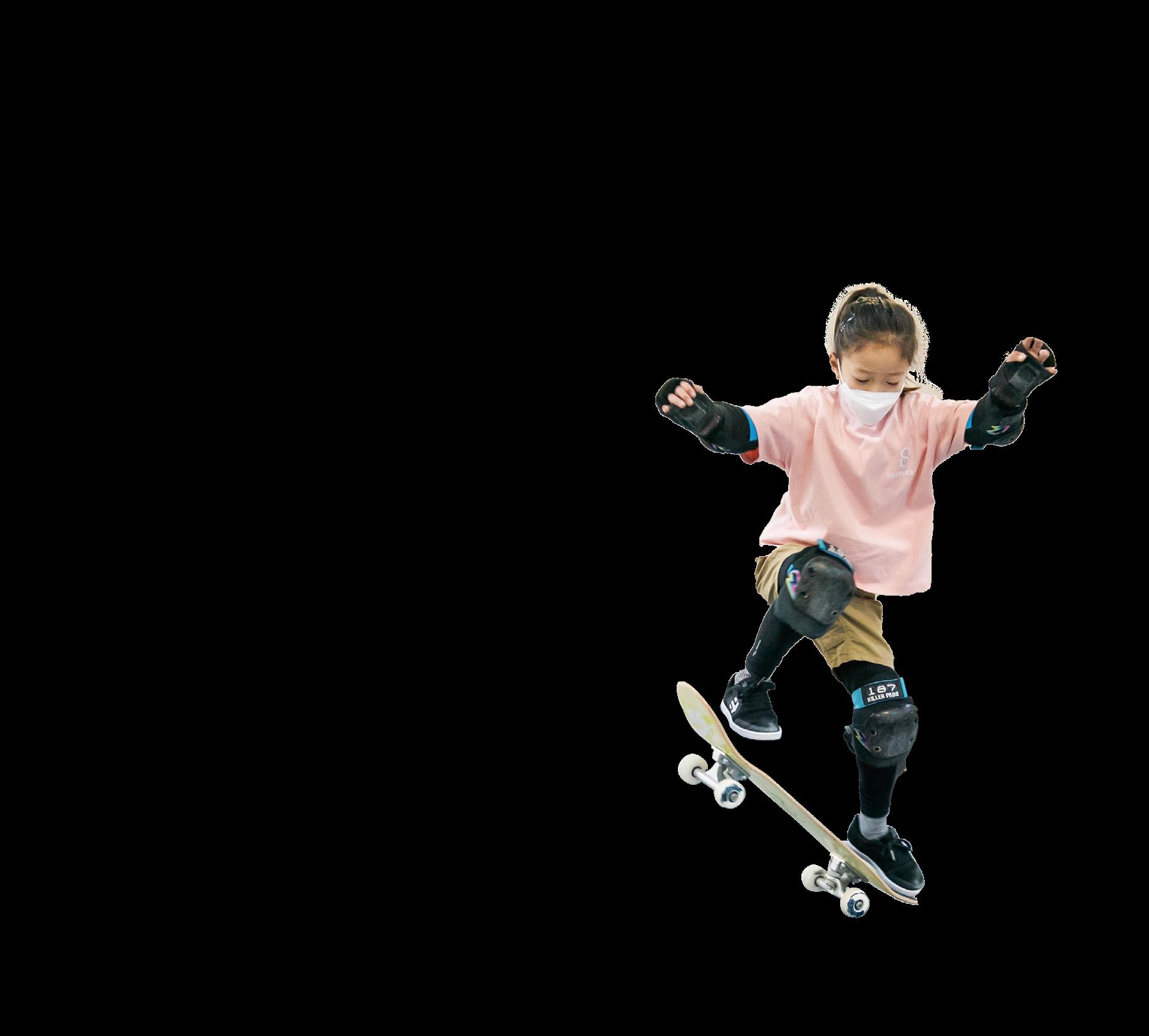 J:滑板給人感覺是,可能會經常跌倒,在我們課程的首兩堂,教練會教導學員如何跌低,更重要是教他們跌低 後再起身,這才是最重要的意義。當孩子對滑板產生興趣後,慢慢就能理解失敗後重新學習的重要,加上滑板 運動有助身體機能的不同發展,例如平衡力、觀察力、手腳協調,核心肌肉訓練等等,亦可培養出耐性、忍痛 能力。