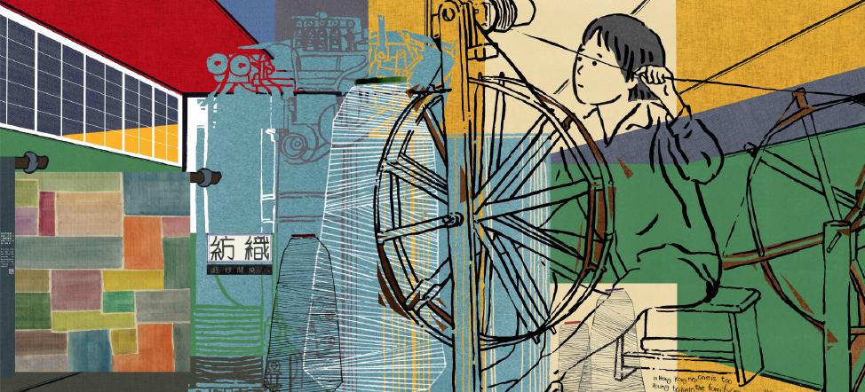 《跡織繪》自2018年在紗廠公園誕生,作品以香港的紡織歷史為靈 感,交織著各式各樣與布料有關的個人故事。藝術家表示,這件作 品結合你我不同時代的影像,將不同位置及所有時間及空間揉合在 一起,留下不同歷史痕跡,融合我們的生活空間。於是,藝術家將 想像及收集得到的紡織故事,組織成一個畫面,讓不同人的故事編 織在一起。