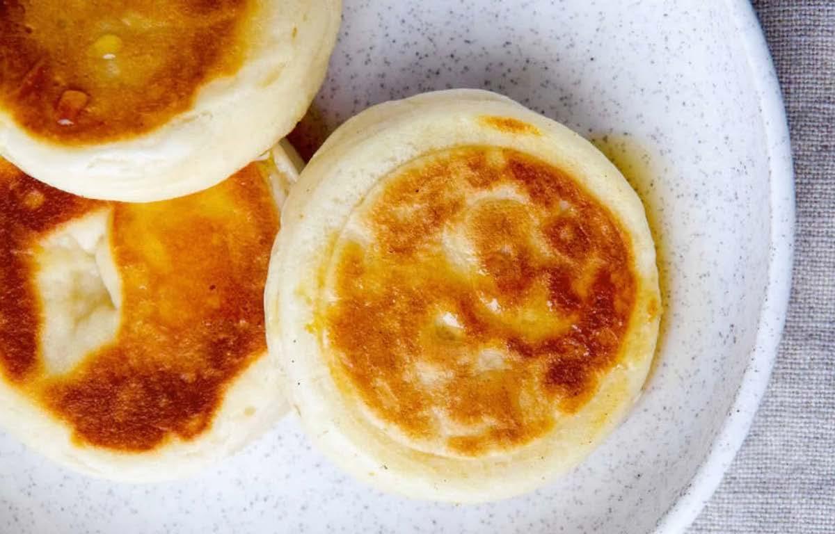 Grease the crumpet rings with oil (you can also use egg rings, cookie cutters or even mason jar lids – anything circular and non-stick if possible).
