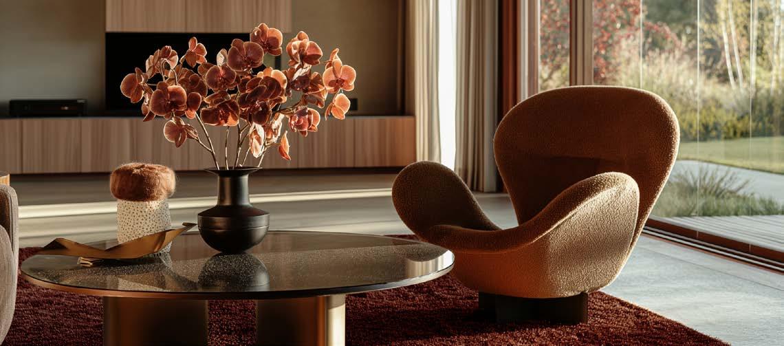 Decorating the home Maddren needed to showcase many different products and finishes, but bring them all together cohesively. ‘We started old school with mood boards and brainstorming ideas,’ says Keegan. ‘We’ve got five different claddings and all sorts of finishes going on, so we brought Natasha from DESIGNNS on board to help us create that wow when you walk in. Several rooms have their own personality but there’s a natural palette and re-occurring elements that unify it all. And curves – there are a lot of curves in this home!’