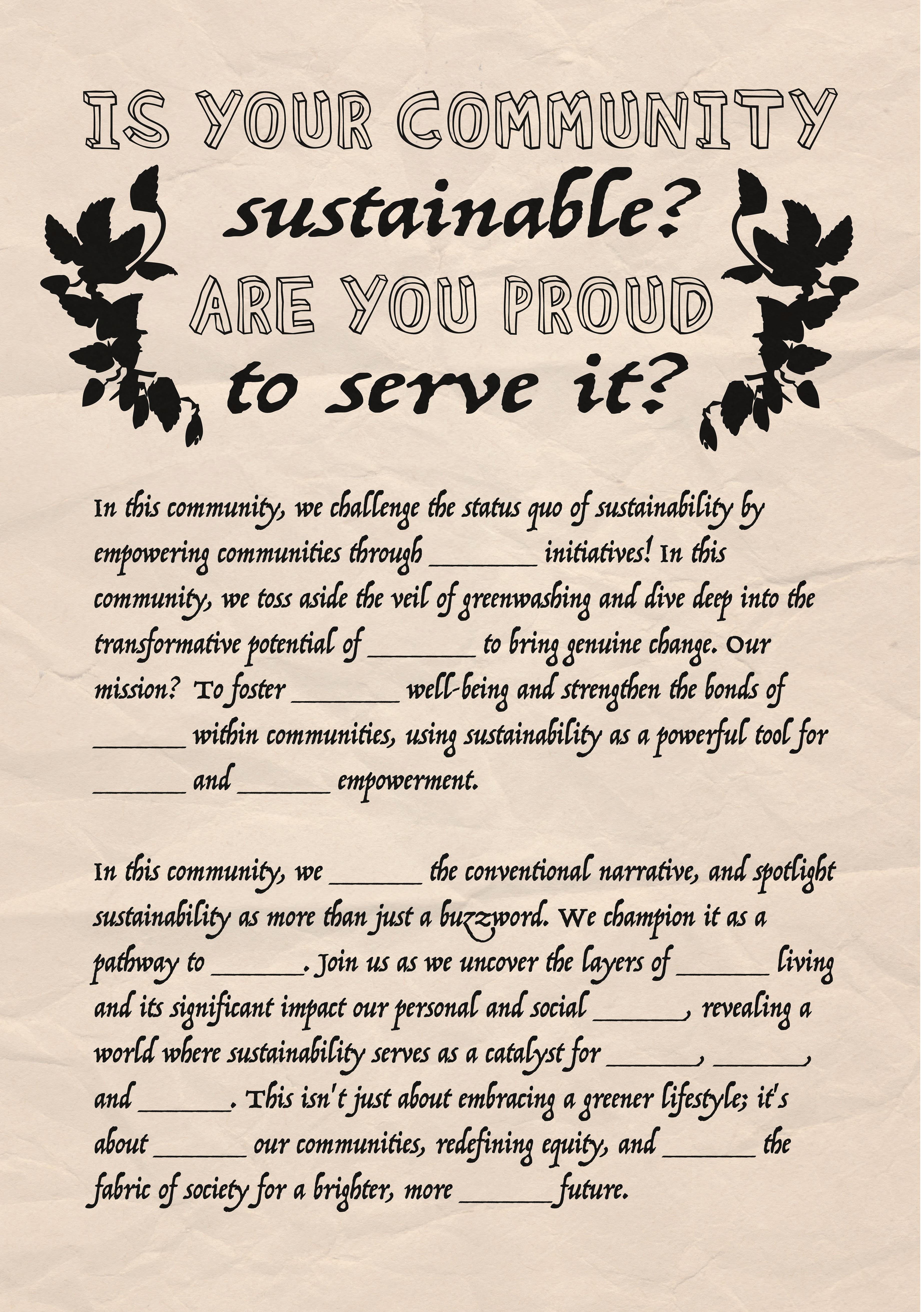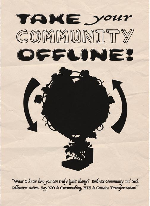 “Take your Community Offline!” seeks to revolutionize perspectives on sustainability by spotlighting commu nity-driven actions and rejecting superficial 'greenwas hing.' I hope to inspire viewers by illustrating how sus tainability fosters healing, equity, and empowerment within communities, unveiling its profound capacity to nurture personal and social harmony.