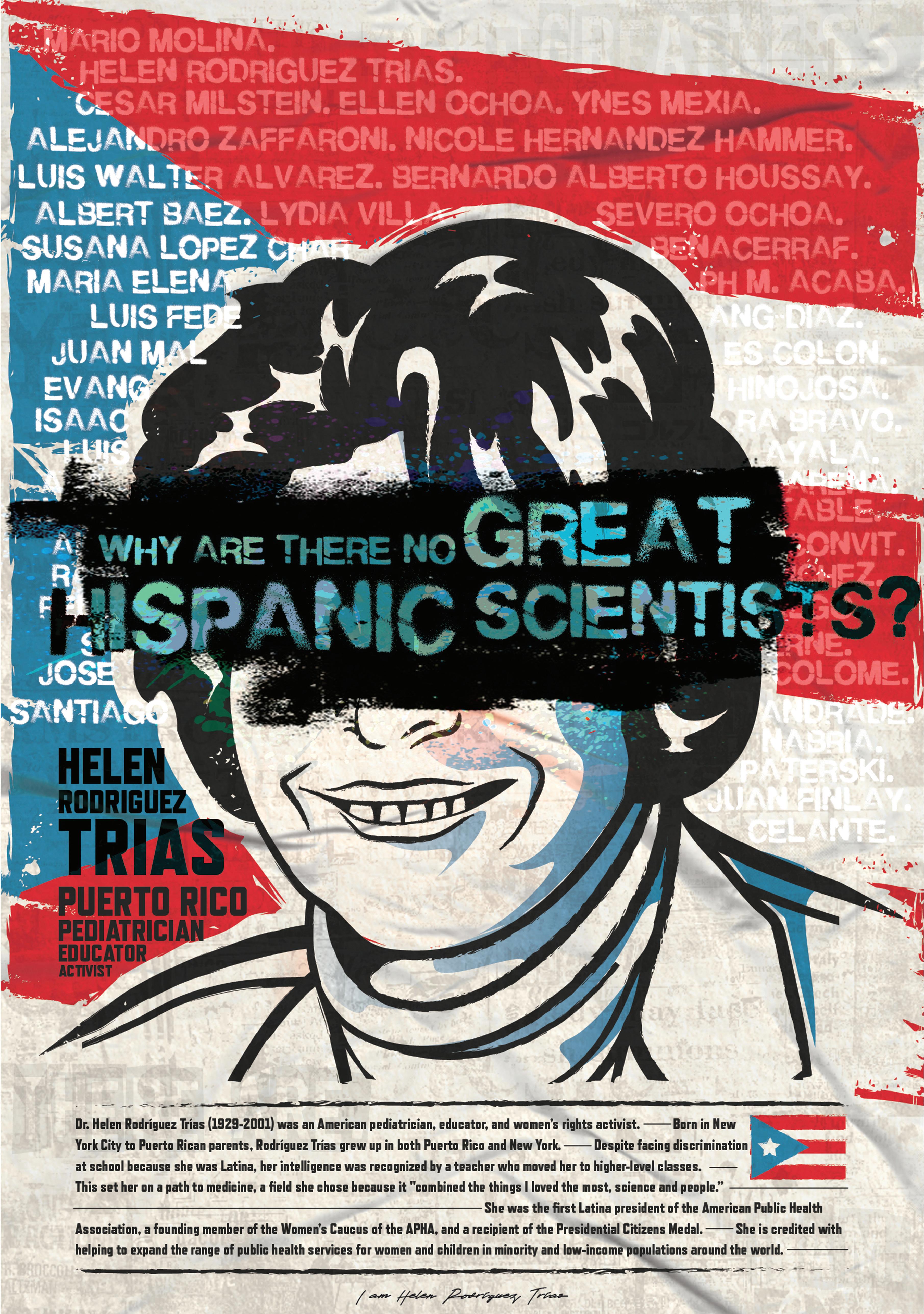 Why are there no great Hispanic scientists? The question implies a presumption that Hispanic scientists lack the capacity for greatness, therefore, an immediate response is often to “rediscover” them, however, this approach fails to challenge the underlying assumption and inadvertently strengthens the negative connotations associated with the question. Through my design series, I aim to challenge the public perception of what constitutes greatness, highlight the “Great” Hispanics in STEM, and even go beyond that, to inspire others to acknowledge the representation of their own cultures and stimulate change.