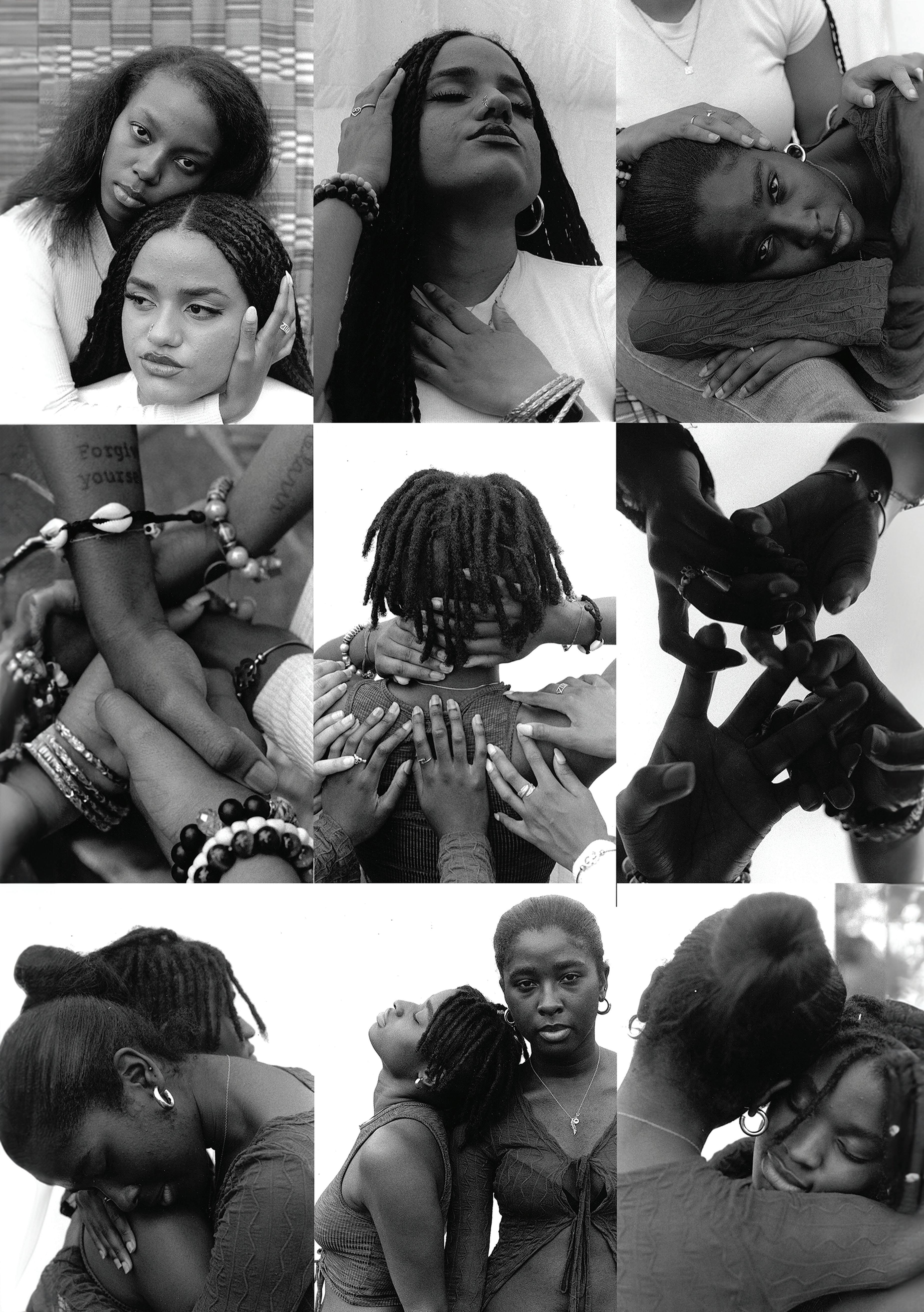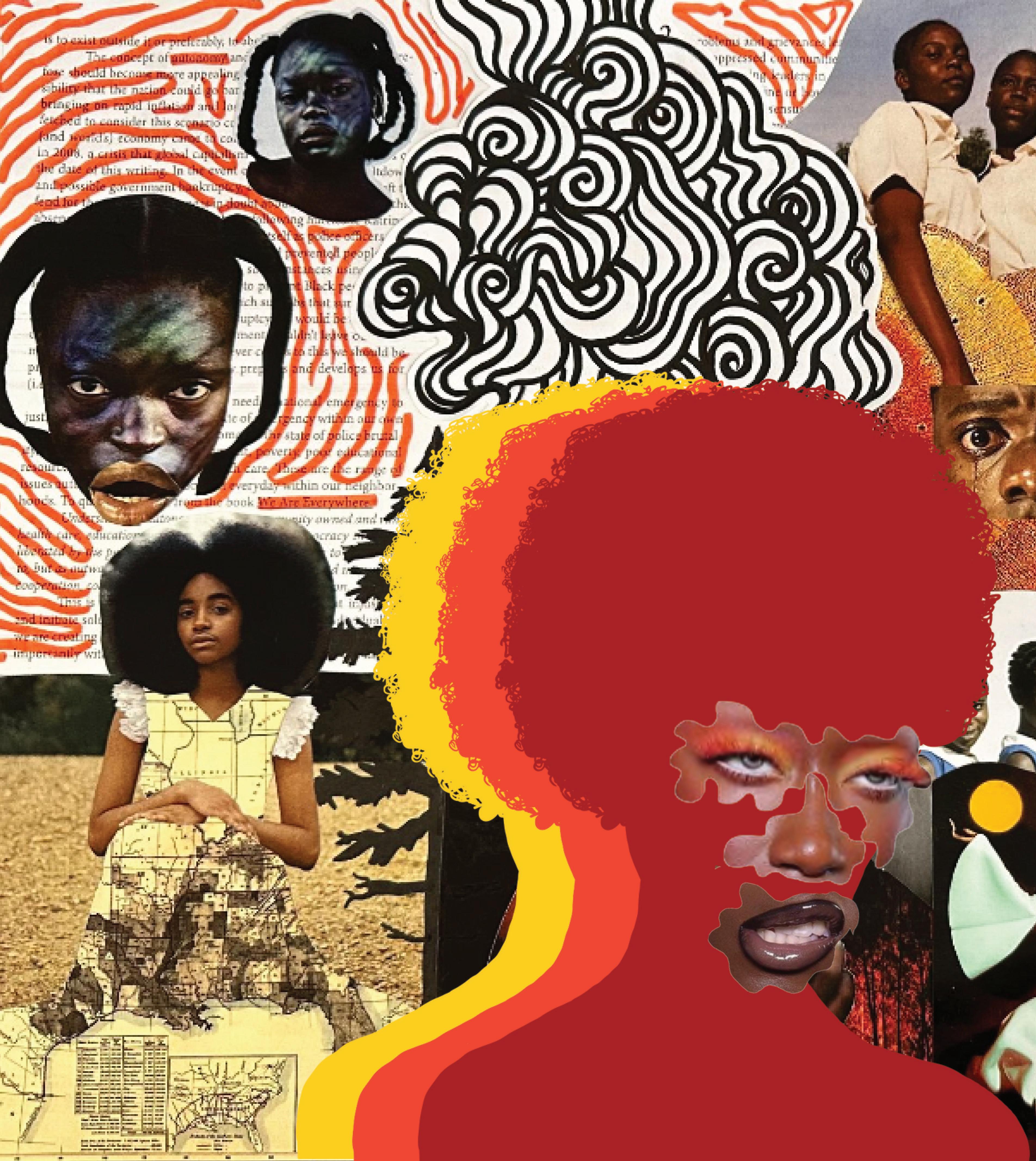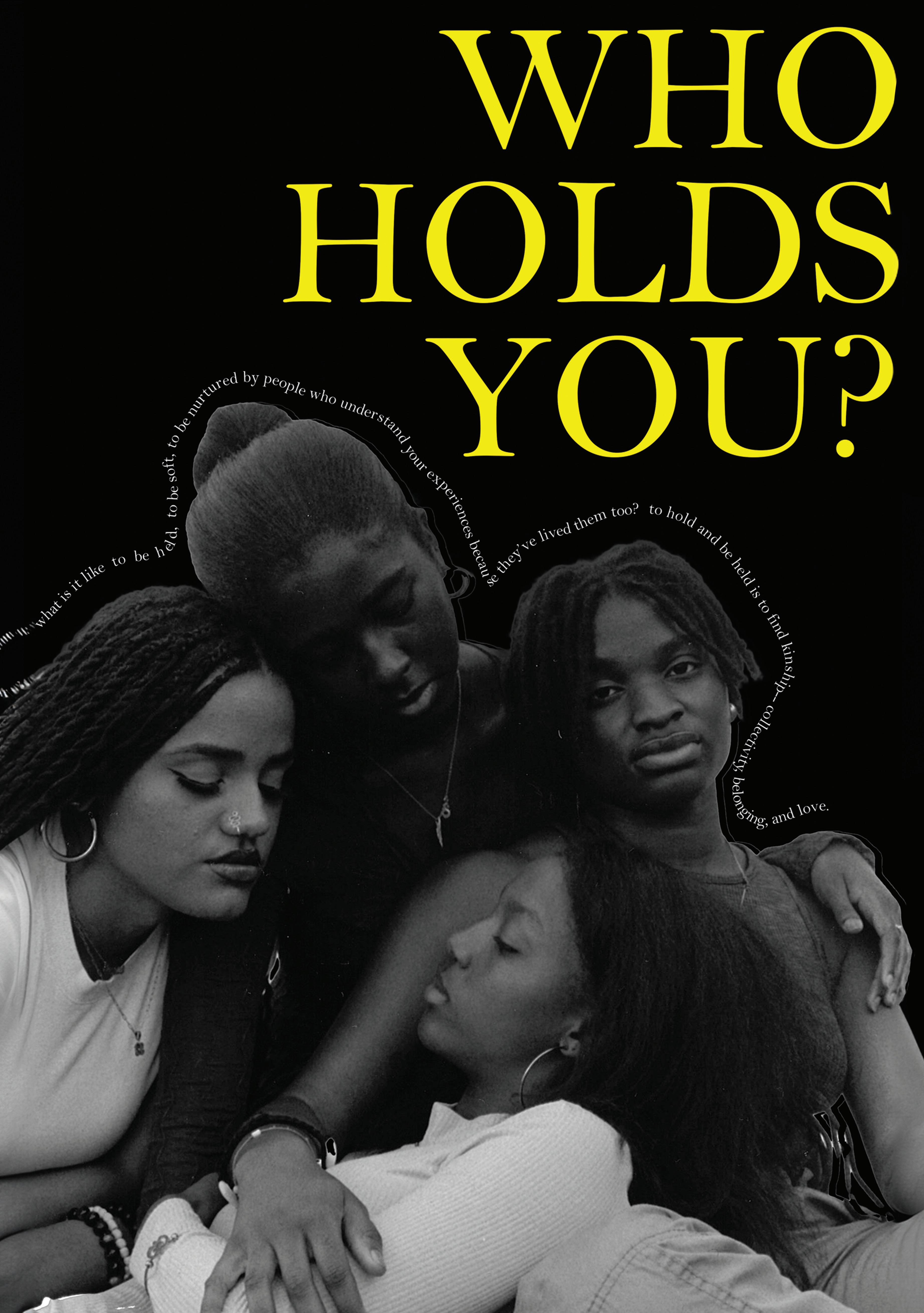 Kinship depicts the profound significance of social connections amongst Black gender-marginalized students at PWIs and the transformative strength of community in exclusive structures like higher education. The piece encourages reflection on networks of kin that each viewer holds dear, thinking deeply about the threads that hold them together.