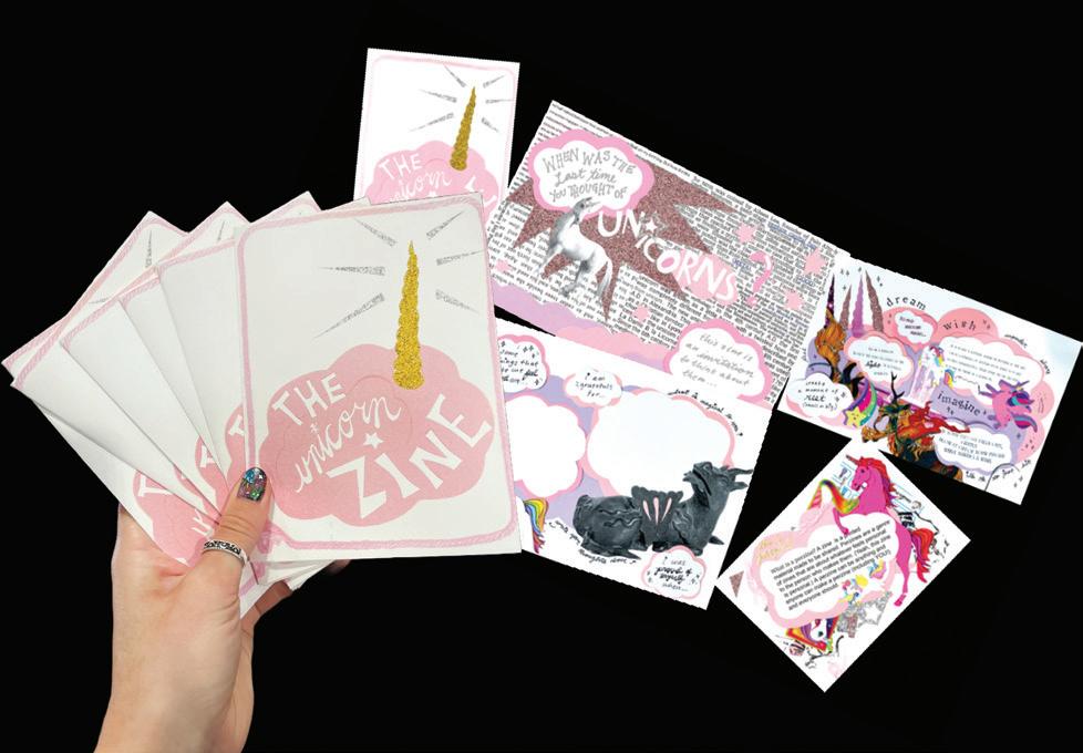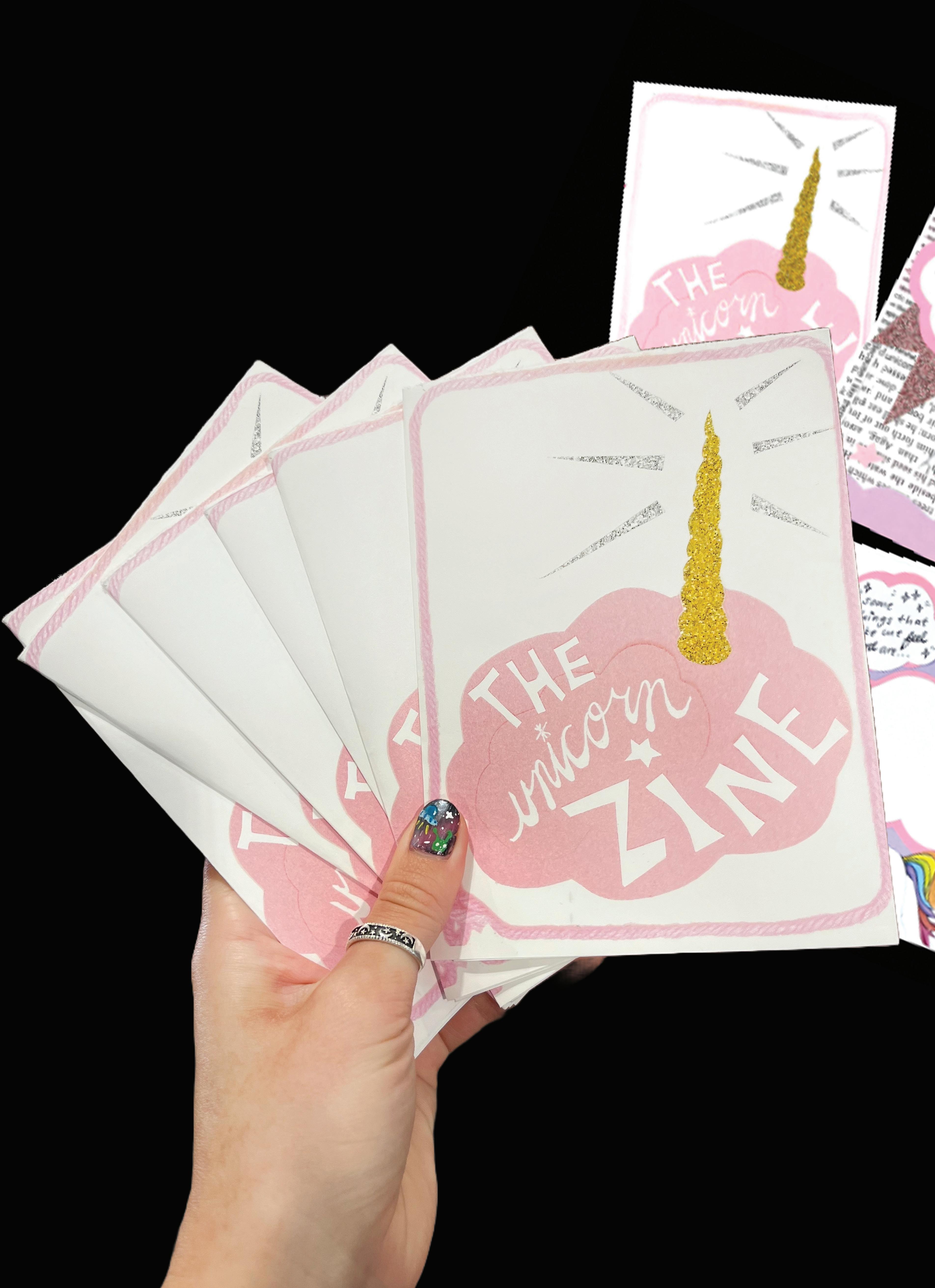 Imagine a horn on a horse (two ordinary things) and something extraordinary is made. There is magic in the mundane. There is magic in vulnerability! Can embedding childlike imagination into our lives help us treat ourselves and others with more compassion? This interactive zine warmly invites the reader to consider the ways compassion, joy, and wellness already appear in their daily life.