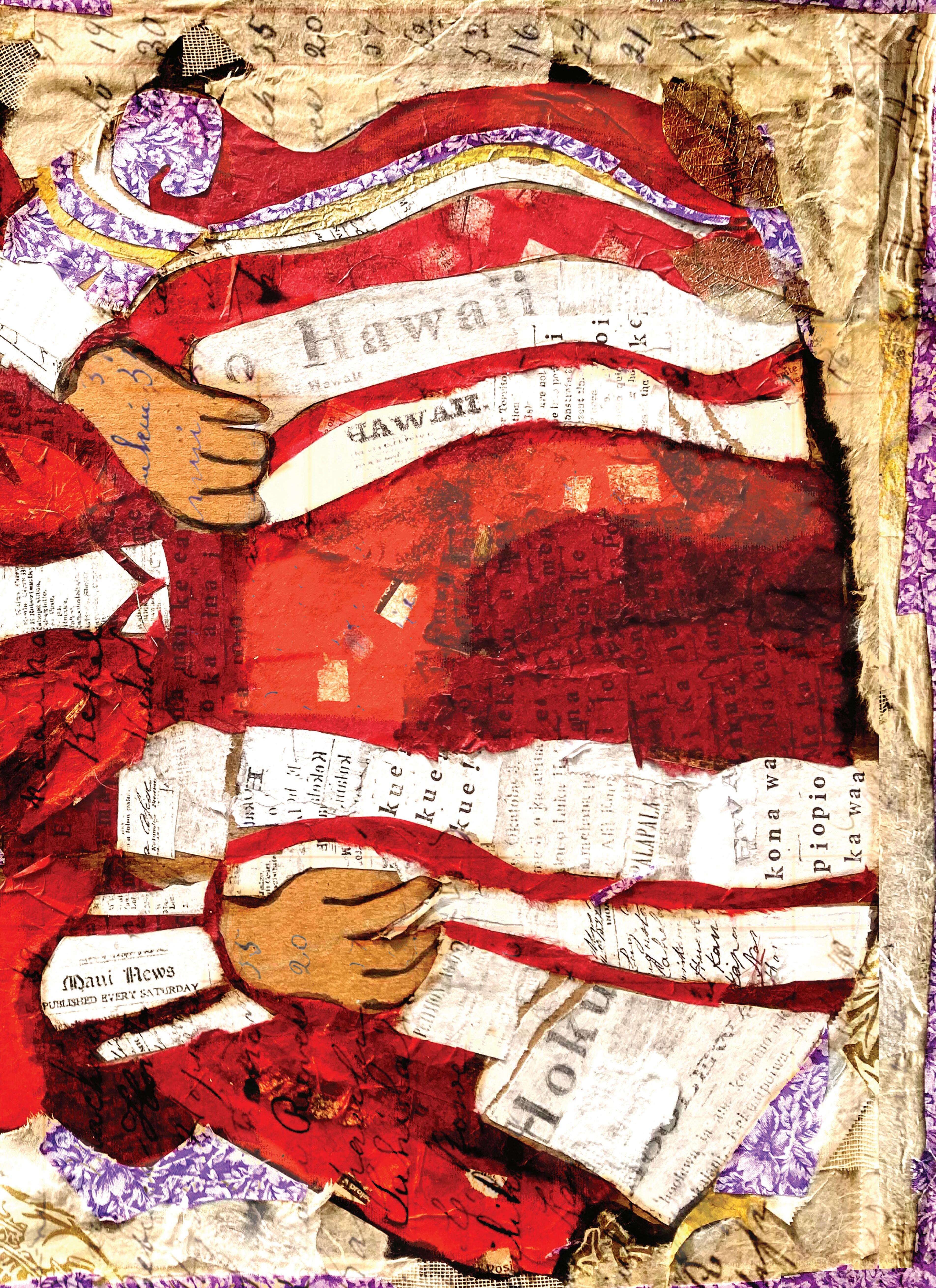 This piece was inspired by the legacy of Hawaiian-language newspapers, which served as a vessel for protest during the overthrow of the Hawaiian Kingdom. As observers sit with Queen Liliuokalani’s presence and her garment of printed protest, I hope they feel the weight of our lāhui’s resistance - painful, potent, and very much alive.