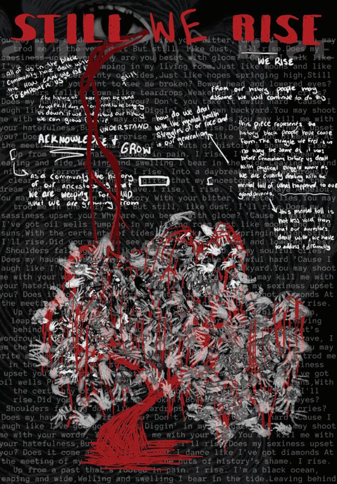 Each of us is because of what and who came before us. We hold their struggle, hope, fears, and dreams all within. In the Black community, culture comes with cultural trauma and inheritance of oppression. This piece calls for an understanding of the physical struggle our ancestors went through and the mental toll it holds on the youth. This history is what we are weeping for, and what we are growing from.