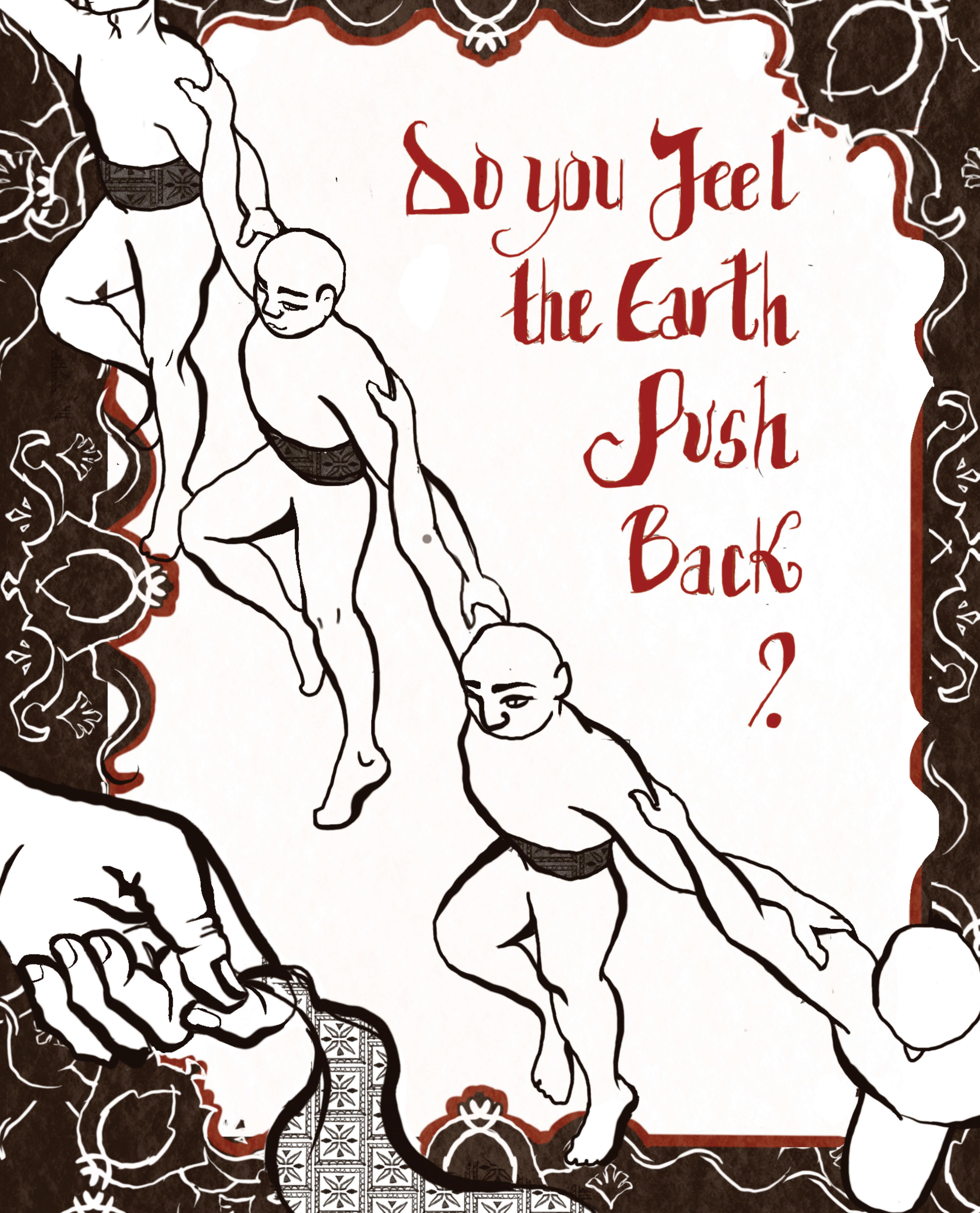 As we walk, dance, lay, we feel the earth pressing up against our bodies. We have forgotten about our eternal companion, that forever holds and pushes us. Despite our senseless supremacy, we have but one eternal home. One day, the earth will no longer push us up, but pull us deep into its belly.
