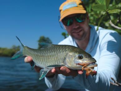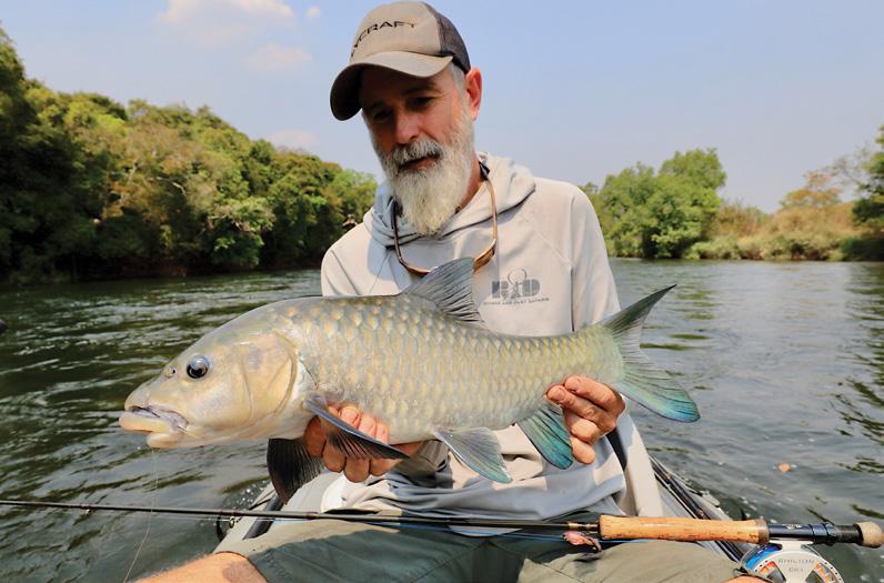 LEARN TO TIE… …PLA’S GNARLY FROG in our most recent stepby-step fly tying video. The Gnarly Headz popper heads developed by Arno Laubscher of ScientificFly are possibly the most advanced popper heads in fly fishing history. Add two strips of rabbit zonker, a bunch of rubber Crazy Legs, a marabou collar and a coat of froggy colours, and you have a padda that’s ready to pop. Head to The Mission’s YouTube channel to watch the full tutorial. youtube.com/@themissionflyfishingmagazine
