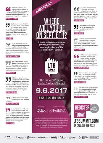 REGISTER DAYASFLEEWFT! TODAY LTBSUMMIT.COM OR CALL: 718-513-2222