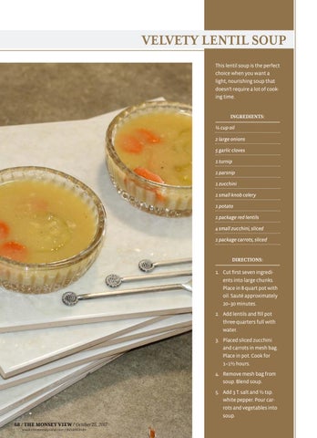 VELVETY LENTIL SOUP This lentil soup is the perfect choice when you want a light, nourishing soup that doesn’t require a lot of cooking time.