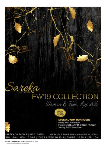 SUN 11-6 | MON 10:30-7 | TUES & WED 10:30- 8 | THURS 10:30-9 | FRI 10-4 38 / THE MONSEY VIEW / September 25, 2019 www.themonseyview.com / 845.600.8484