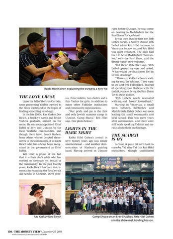 LIGHTS IN THE DARK NIGHT Rabbi Hilel Cohen’s arrival in Kyiv twenty years ago was rather unintentional — and another demonstration of Hashem’s guiding hand. Having arrived in Ukraine