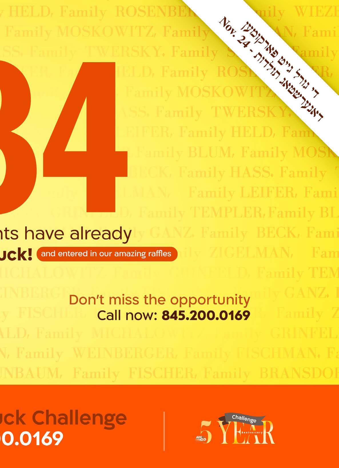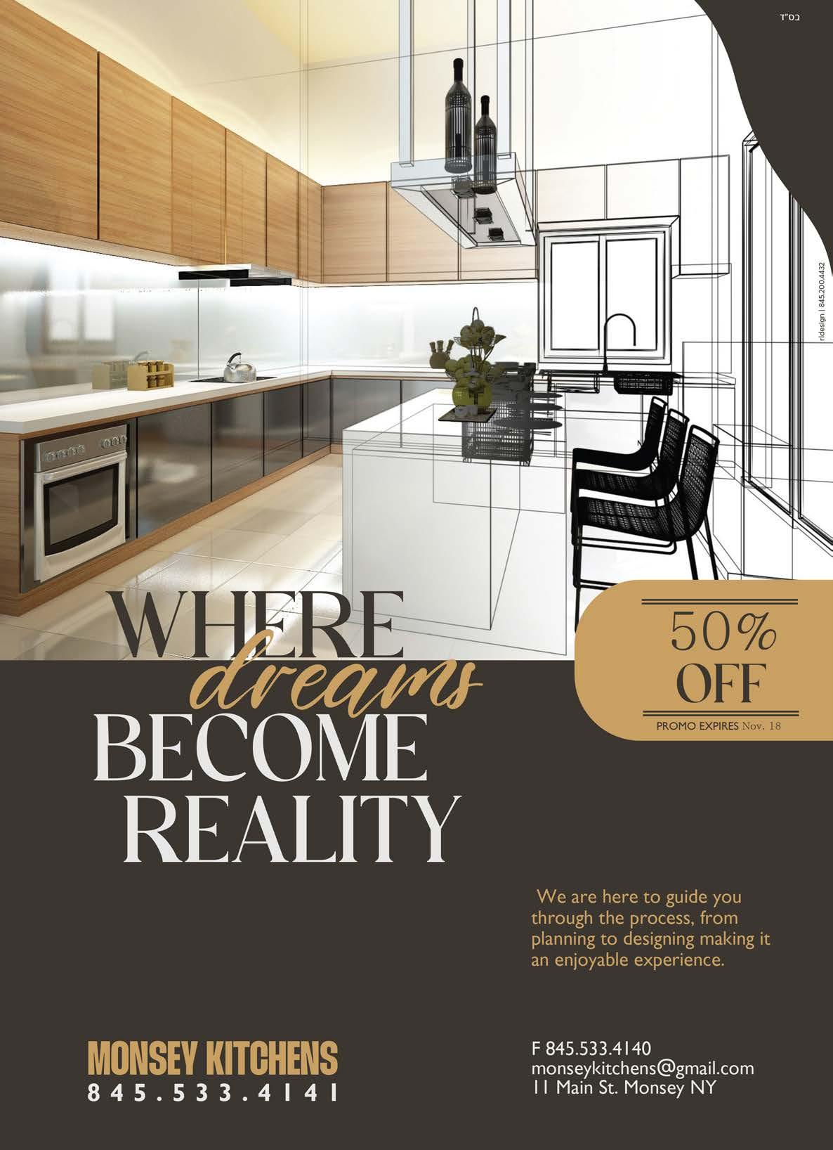 MONSEY, NY WEATHER FORECAST THURSDAY 45°/28° 25% FRIDAY 41°/24° 11% MONDAY 38°/22° 55% SHABBOS 37°/25° 14% TUESDAY 39°/20° 0% SUNDAY 41°/26° 16% WEDNESDAY 41°/25° 0% The Everest Equity Company, Inc. Registered Mortgage Broker New York State Department of Financial Services. Mortgage Broker Licensed by the New Jersey Department of Banking and Insurance. Licensed Mortgage Broker CT, PA, FL and NC Banking Departments. Loans arranged through third party providers. Company NMLS ID 12484 8 4 5 3 5 7 6 9 0 0 • n f o @ e v e r e s t e q u t y c o m • e v e r e s t e q u t y c o m 2 E X E C U T V E B L V D S U T E 2 0 1 • S U F F E R N , N Y 1 0 9 0 1 118 www.themonseyview.com 845.600.8484 The Monsey View November 16, 2022