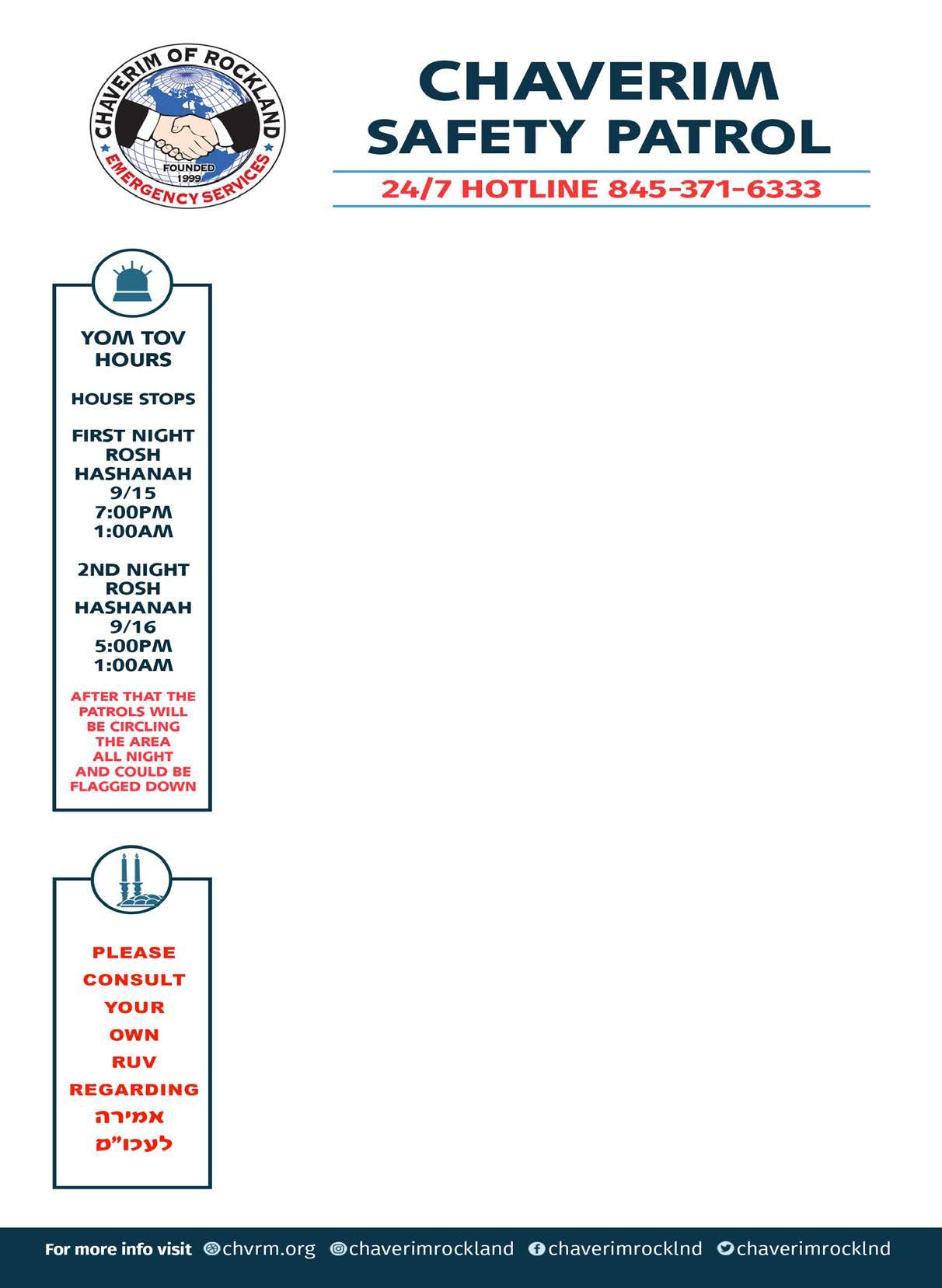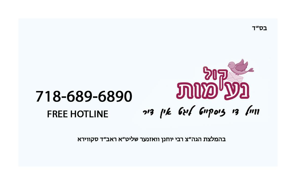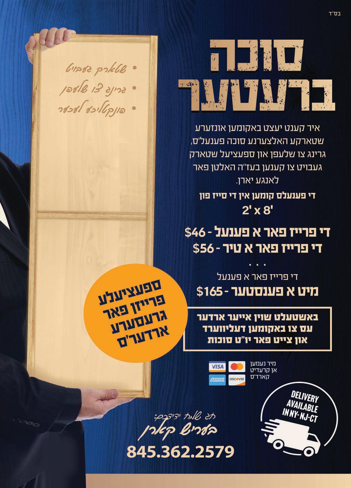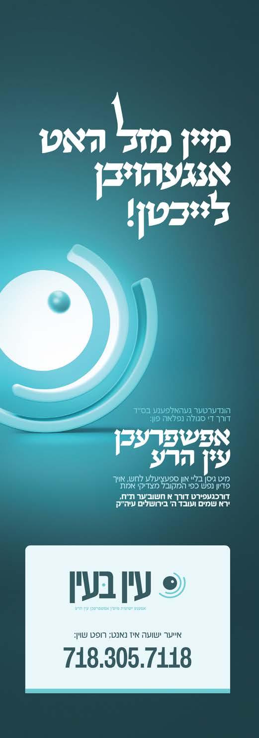 To sponsor posters & ads, םיברה יוכיזל as a zechus for a shidduch/refuah shleima/etc., please call 845.642.1272.