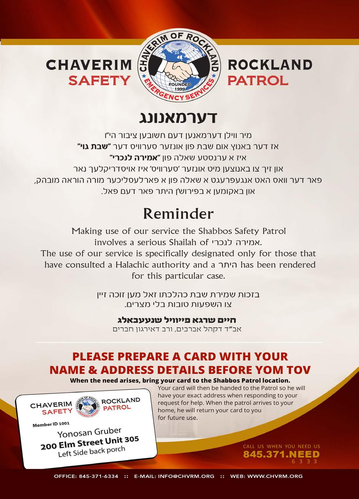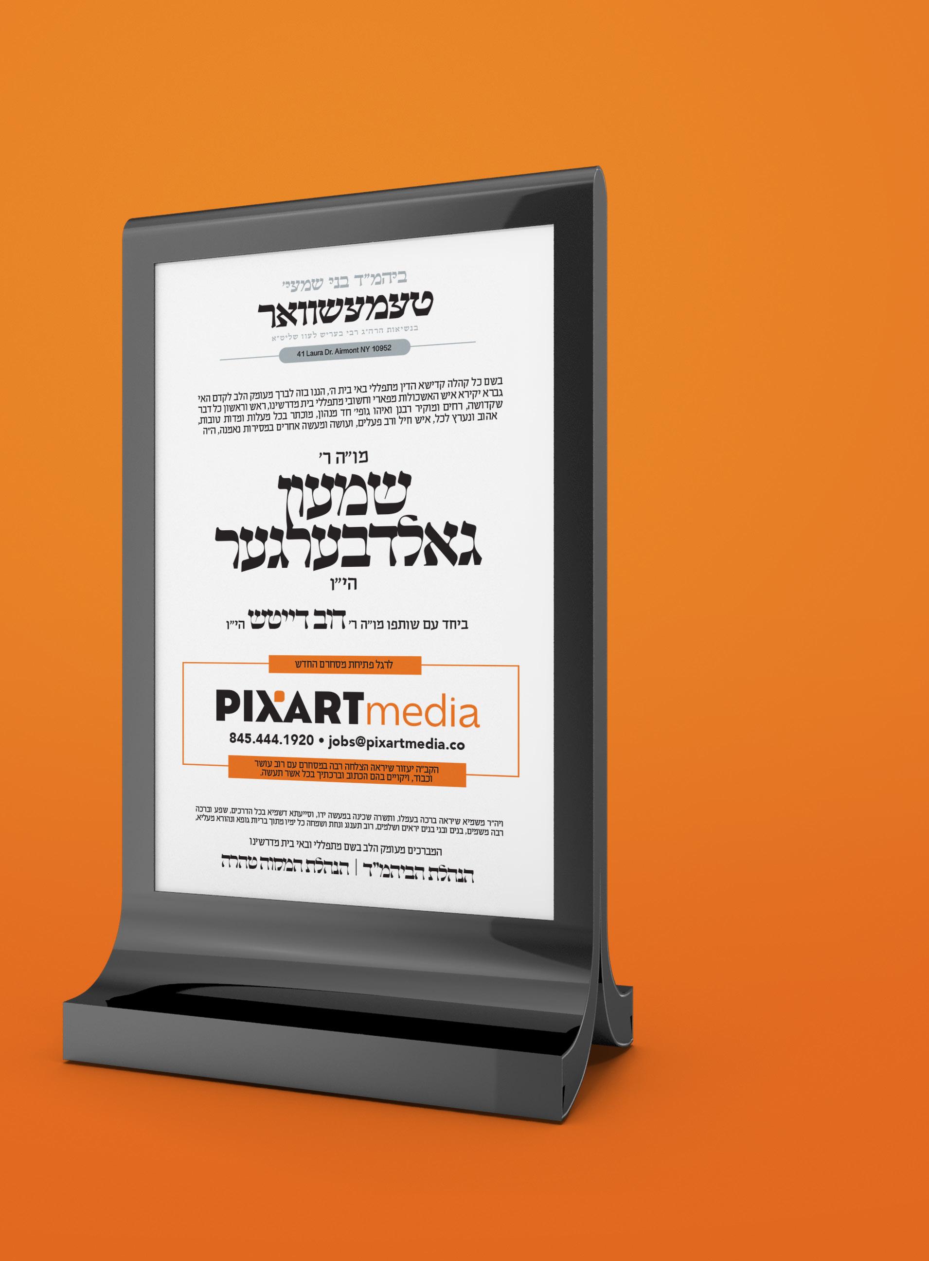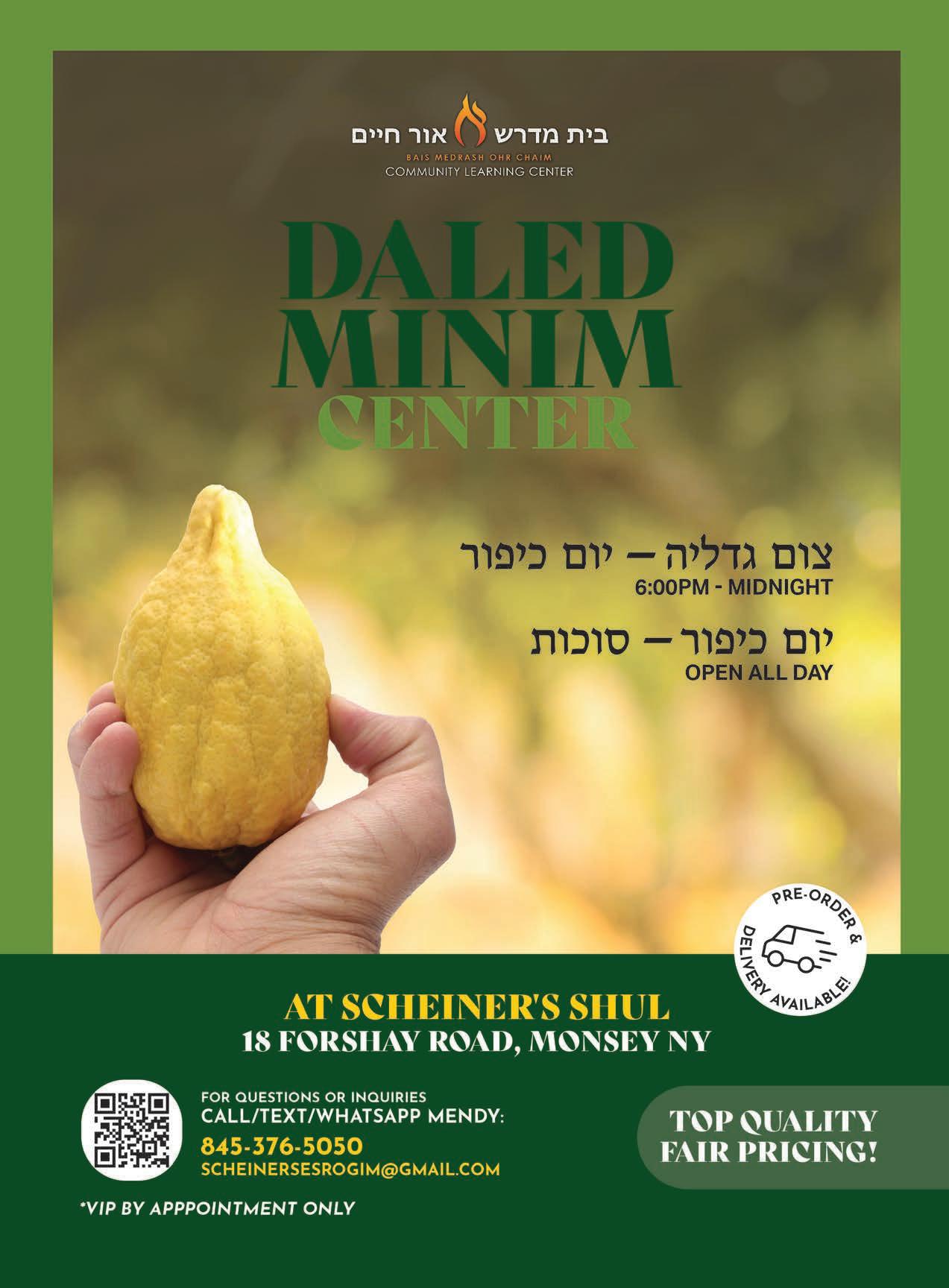 To sponsor posters & ads, םיברה יוכיזל as a zechus for a shidduch/refuah shleima/etc., please call 845.642.1272.