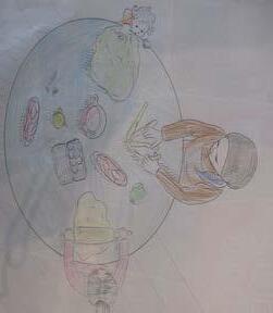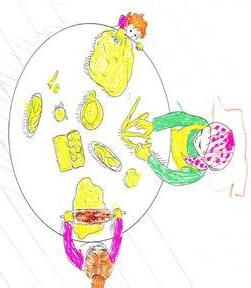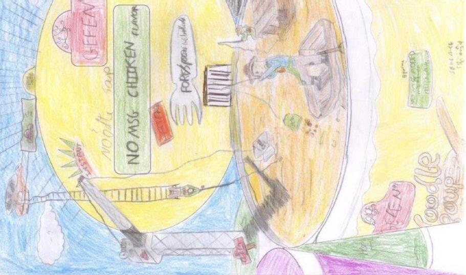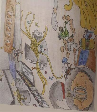 By: B. R., then Age 13 Hissing, Heating, Steaming up Gushing, Pouring Ensuring in a cup Sizzling, Swirling Sipping until noon Licking, picking, The noodles with a spoon long, Careless,Endless spaghetti A bunch, For lunch, or brunch Waving, Craving Saving the rest
