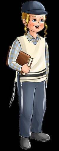 G., then Age 14 On the stool near the shelf, Little Libby sits herself