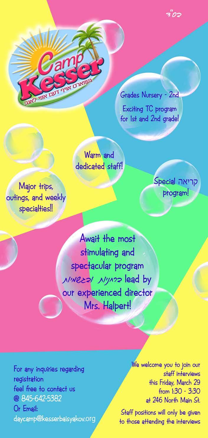 WHERE SUMMER MEETS FUN Transform this summer into a memorable experience where your daughter thrives! Alley Valley is excited to unveil an enriching summer program tailored to foster your child's growth and develop her skills through engaging activities. flawlessdesigsny.com Call to inquire about eligibility: LOOKING FOR ENERGETIC STAFF: MOST INSURANCES ACCEPTED Make your summer count! Girls ages 5-13 Heimishe environment 845-600-0801 ex.9 HR@alleyvalley.com