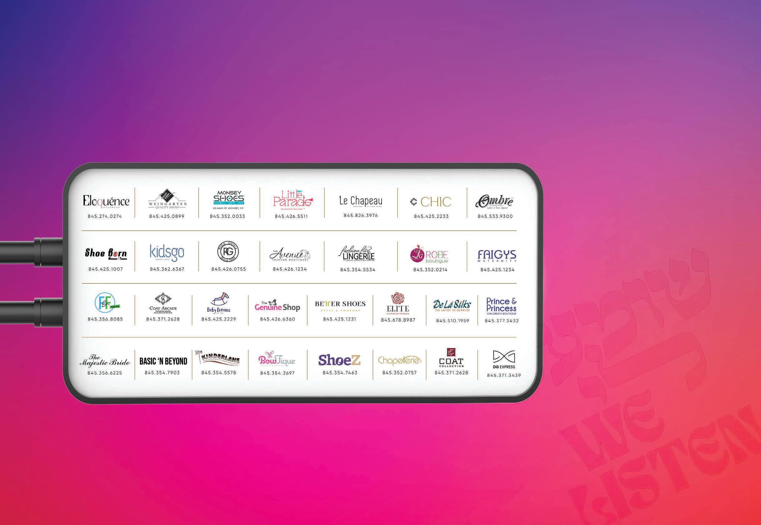 Styled for Mommy. Priced for Daddy. BORO PARK 3813 13TH AVE 347โข663โข7999 SUN-TH 10:30-6:30 FRI 10:30-1 MONSEY 401 W RT. 59 โข AT THE ATRIUM PLAZA 845โข459โข6112 SUN-TH 10:30-6:30 โข FRI 10:30-1 LAKEWOOD AMAZING SAVING SHOPPING PLAZA 732โข250โข4140 SUN-TH 10:30-6 โข FRI 10-1 SS 24