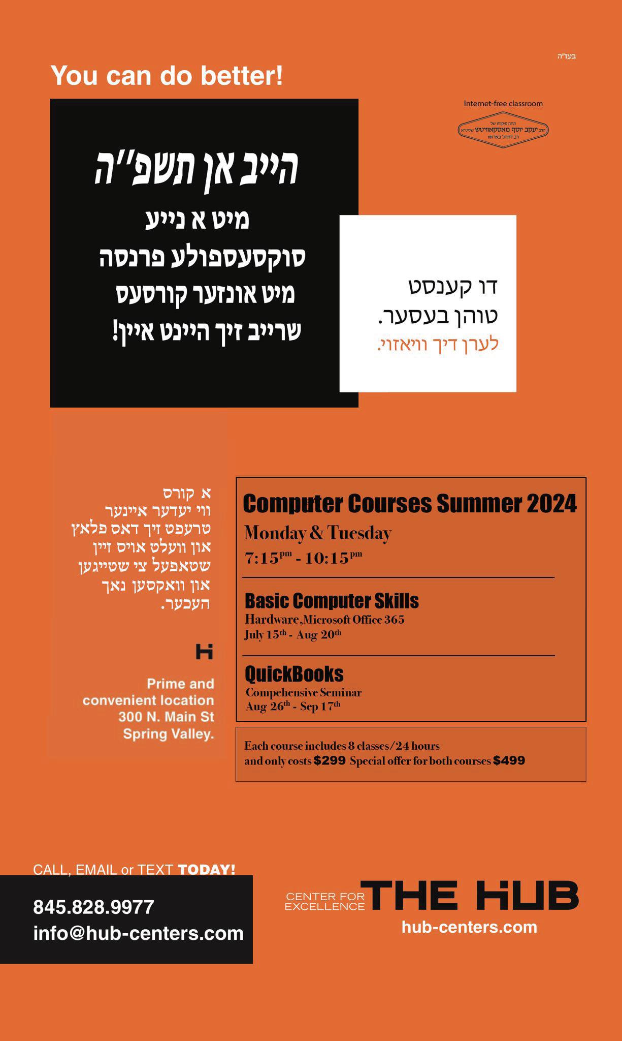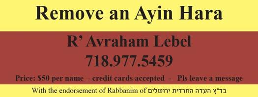 BROOKLYN 718-438-7204 / 4601 16th Ave • MONSEY 845-352-1738 / 3 Morris Rd. MONROE 845-783-6175 / 52 Bakertown Rd. • LAKEWOOD 848-290-9199 / 6730 Route 9 S Howell NJ