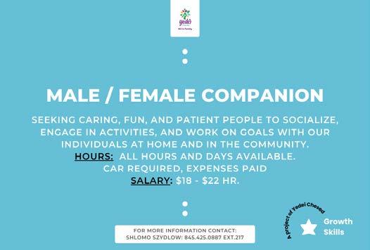 We are seeking dedicated and compassionate staff to work with a group of young women in a dormitory environment. These individuals require companionship and light support in the evenings, with responsibilities including assisting with meal preparation and maintaining a positive, safe, and healthy atmosphere. The role requires 3-4 hours of support in the evening, and availability for Shabbos is essential. If you are passionate about creating a well-maintained and happy home environment, contact 845.425.0887 ext.212