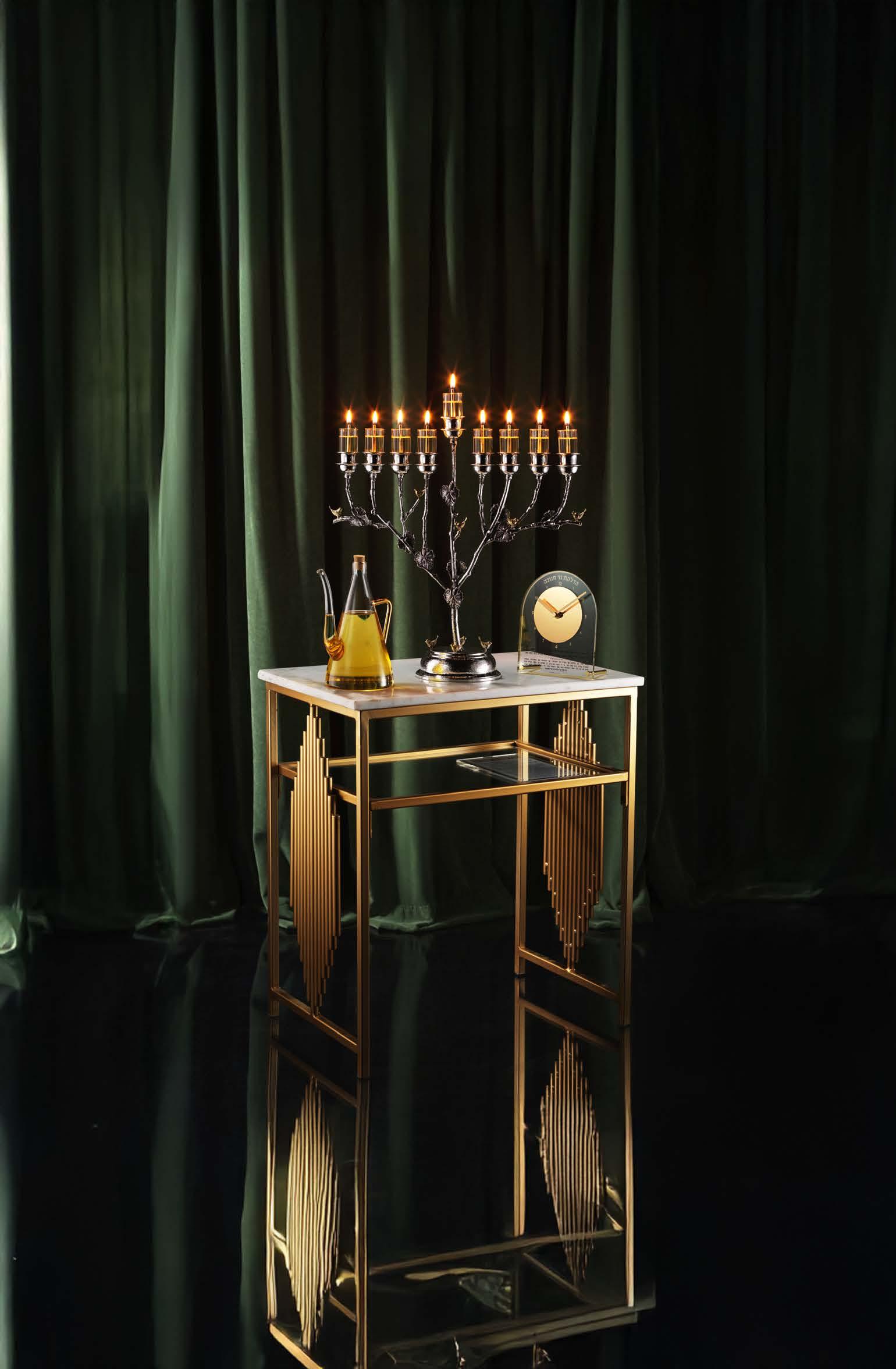 A STURDY AND RELIABLE TABLE, THOUGHTFULLY DESIGNED FOR YOUR MENORAH. TRIPLE
