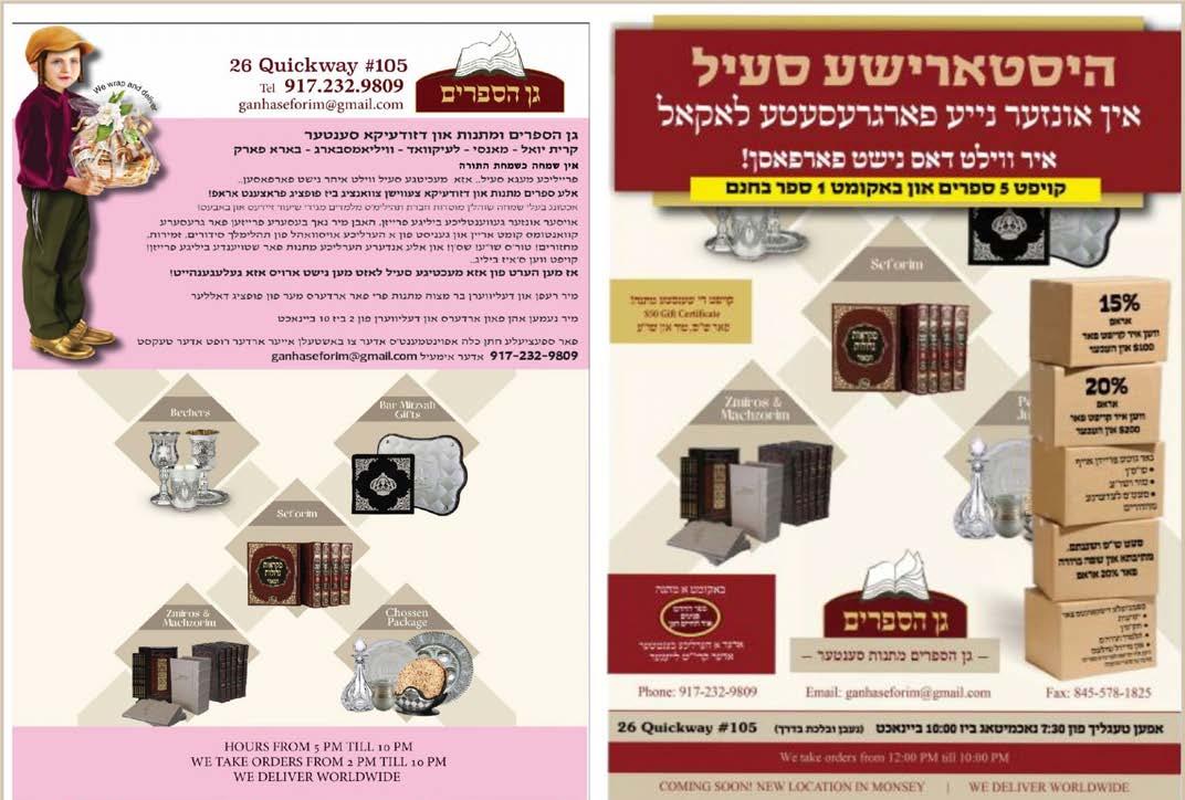 Lakewood: 1072 Madison Avenue Monsey: 38 Laura Drive, Airmont, NY Toronto: 118 Caribou Road Flatbush: 571 McDonald Boro Park: 1447 51st Street, Basement
