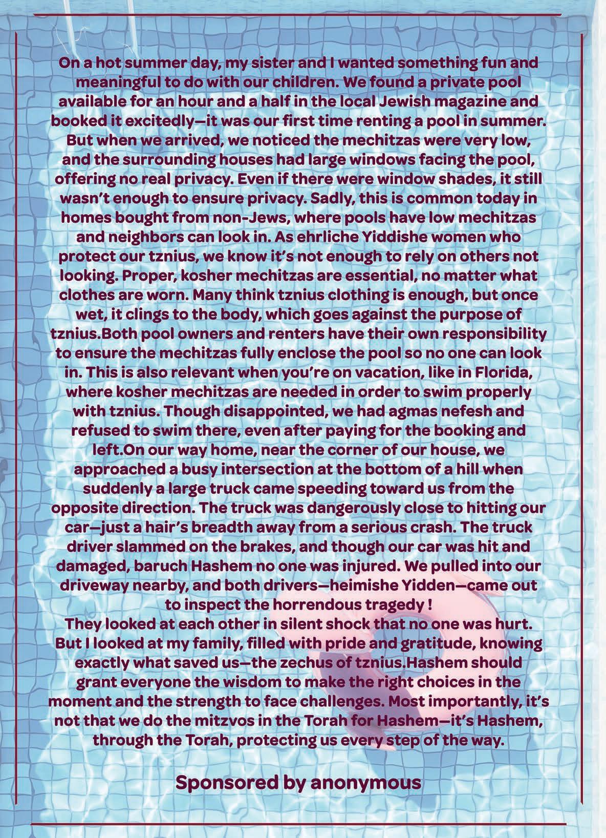 The article about the pet therapist and the different ways animals are used in therapy was fascinating! I was amazed to “meet” a frum woman in this field. It was also so refreshing to learn about something I had only vaguely been aware of until now. What a bracha for our community to be able to access the benefits of animal therapy through someone who knows and understands our values and community from the inside.