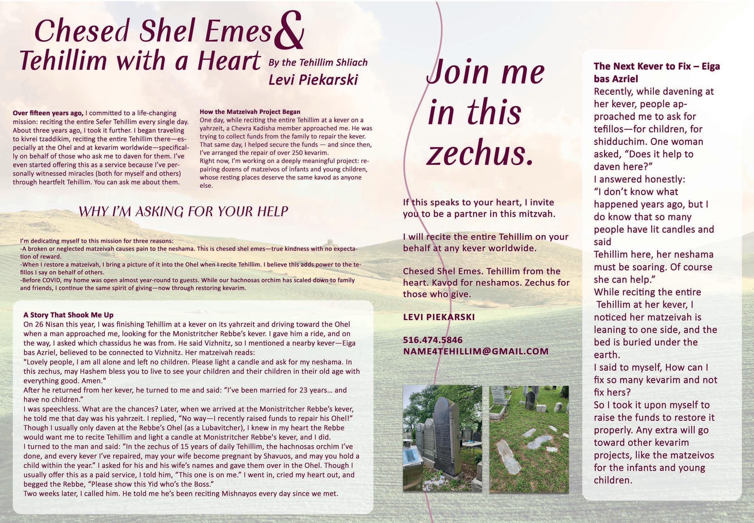 Yerushalmi Yidden have long since discovered the key to yeshuos – davening at the tzion of the Ohr Hachaim Hakadosh. Now, you too, can unlock the yeshuos you’re waiting for through the dedicated messengers of Tehillim Kollel, who will recite all of Tehillim for you at the kever for 40 consecutive days, Starting on the yahrtzeit, 15 Tammuz – until Rosh Chodesh Elul.