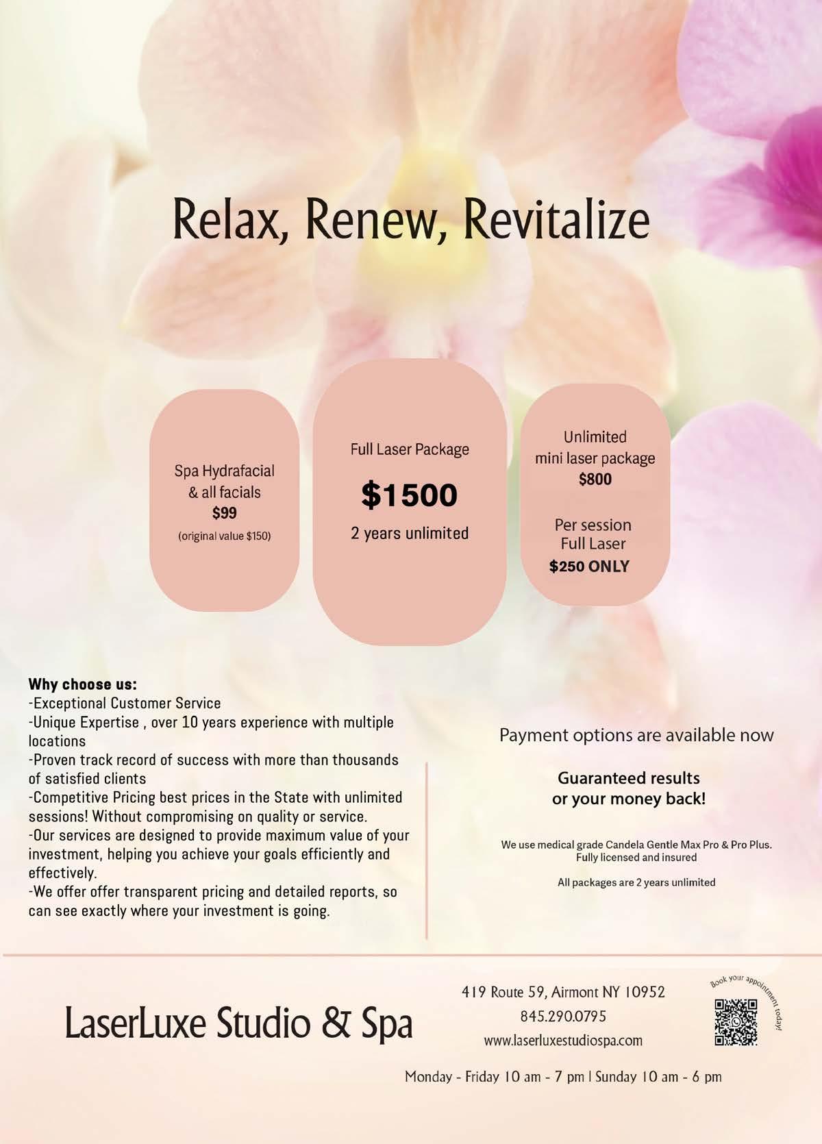 LASER HAIR REMOVAL, ELECTROLYSIS, WAXING, FACIALS, LED LIGHT TREATMENTS, IPL TREATMENTS, NAILS, MASSAGES, MAKEOVERS, EYEBROW & EYELASH LAMINATION AND TINTING