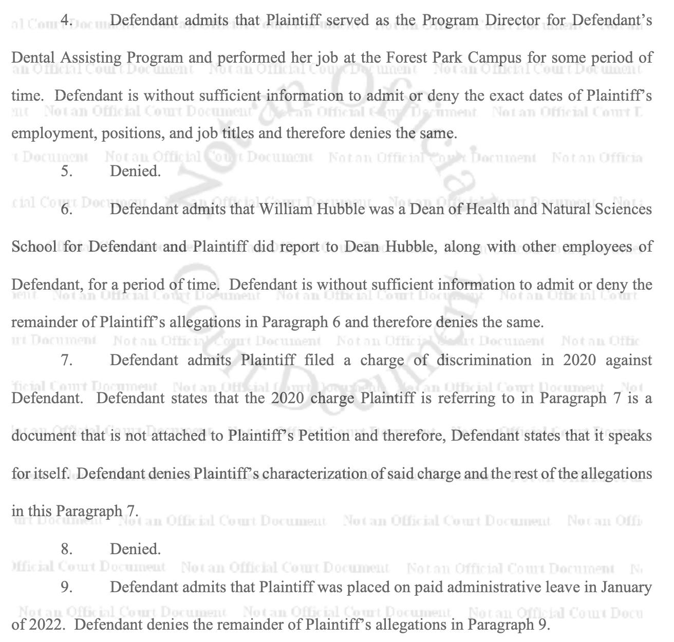 According to the suit, upon William Hubble’s arrival as District Dean of Health and Science in 2018, the following occurred: