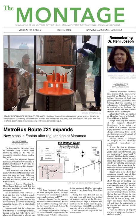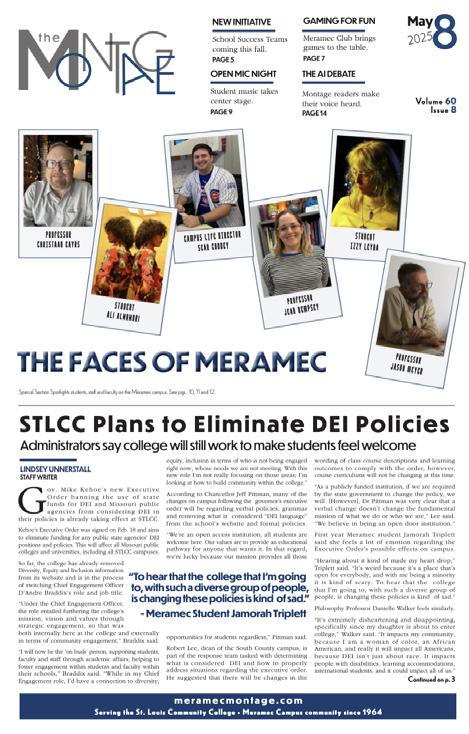 The Montage is a student publication produced seven times per semester at St. Louis Community CollegeMeramec, 11333 Big Bend Blvd., Kirkwood, Mo., 63122. 314-984-7655.