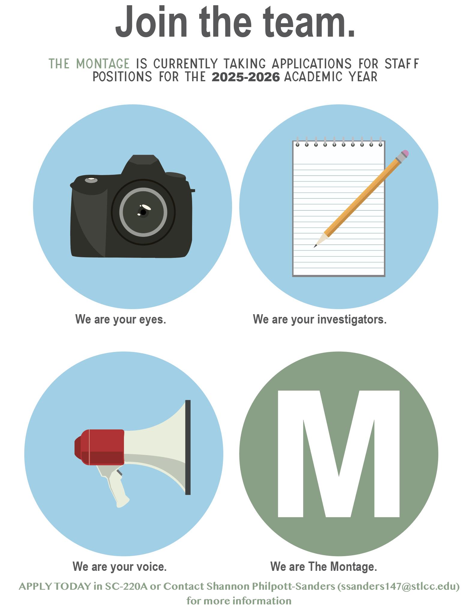 Now hiring editors, writers, photographers and graphic designers. To apply, contact Faculty Adviser Shannon Philpott-Sanders at ssanders147@stlcc.edu.