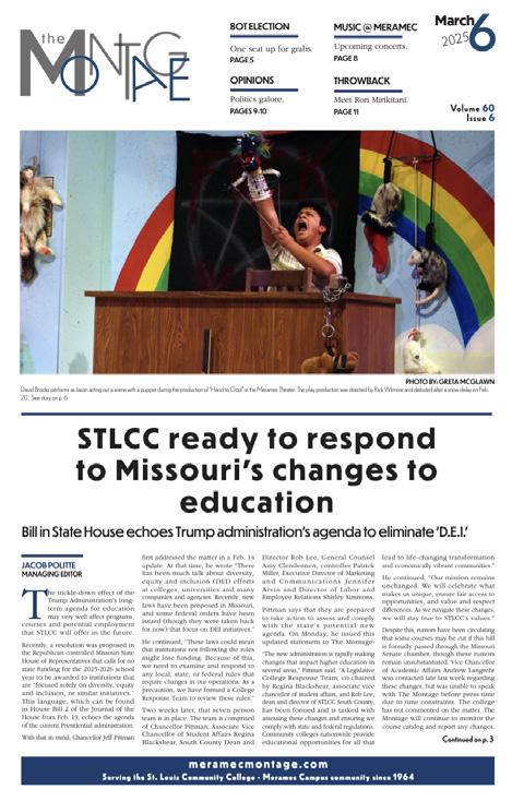 Section 4, “What Was On” revisits some of the biggest news stories of the 2024-2025 school year, including a look back at two notable stories involving STLCC Board Chair Kevin MartIn and a former instructors lawsuit against the college, a look back at the “Faces of Meramec” and much more.