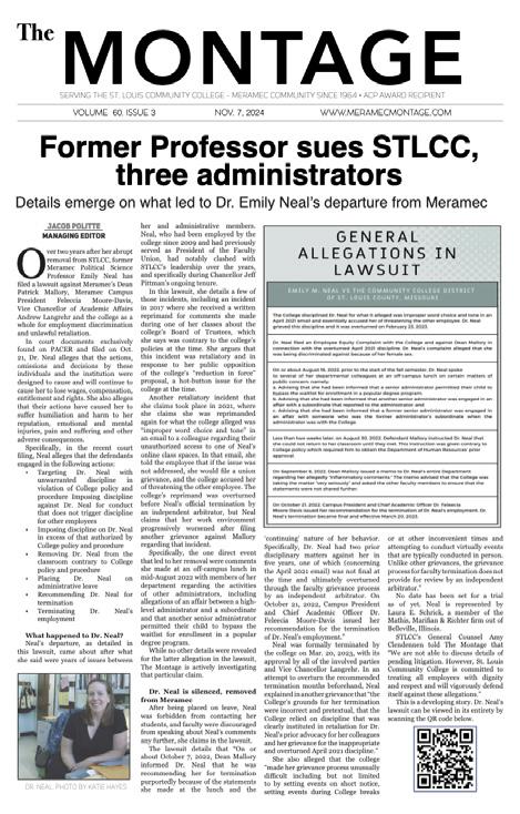 Over two years after her abrupt removal from STLCC, former Meramec Political Science Professor Emily Neal has filed a lawsuit against Dean Patrick Mallory, Campus President Feleecia Moore-Davis, Vice Chancellor of Academic Affairs Andrew Langrehr and the college as a whole for employment discrimination and unlawful retaliation.