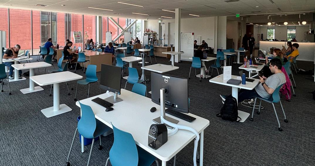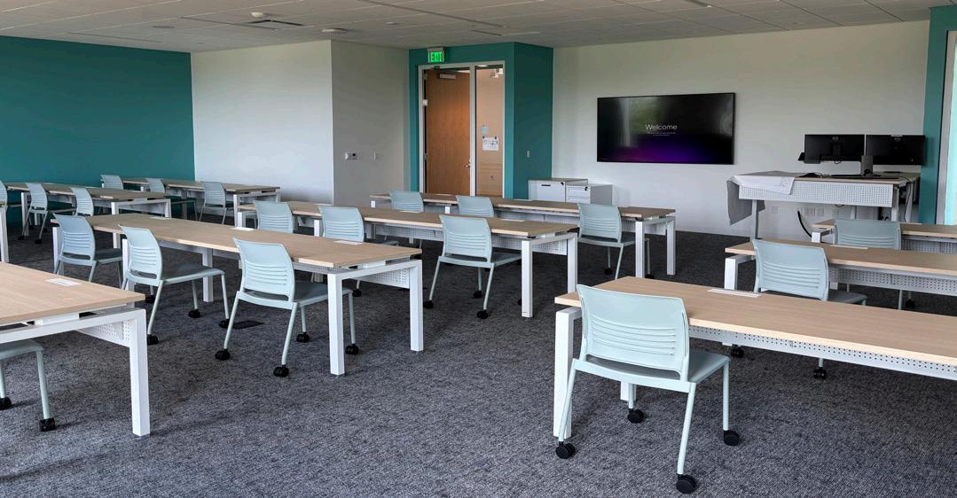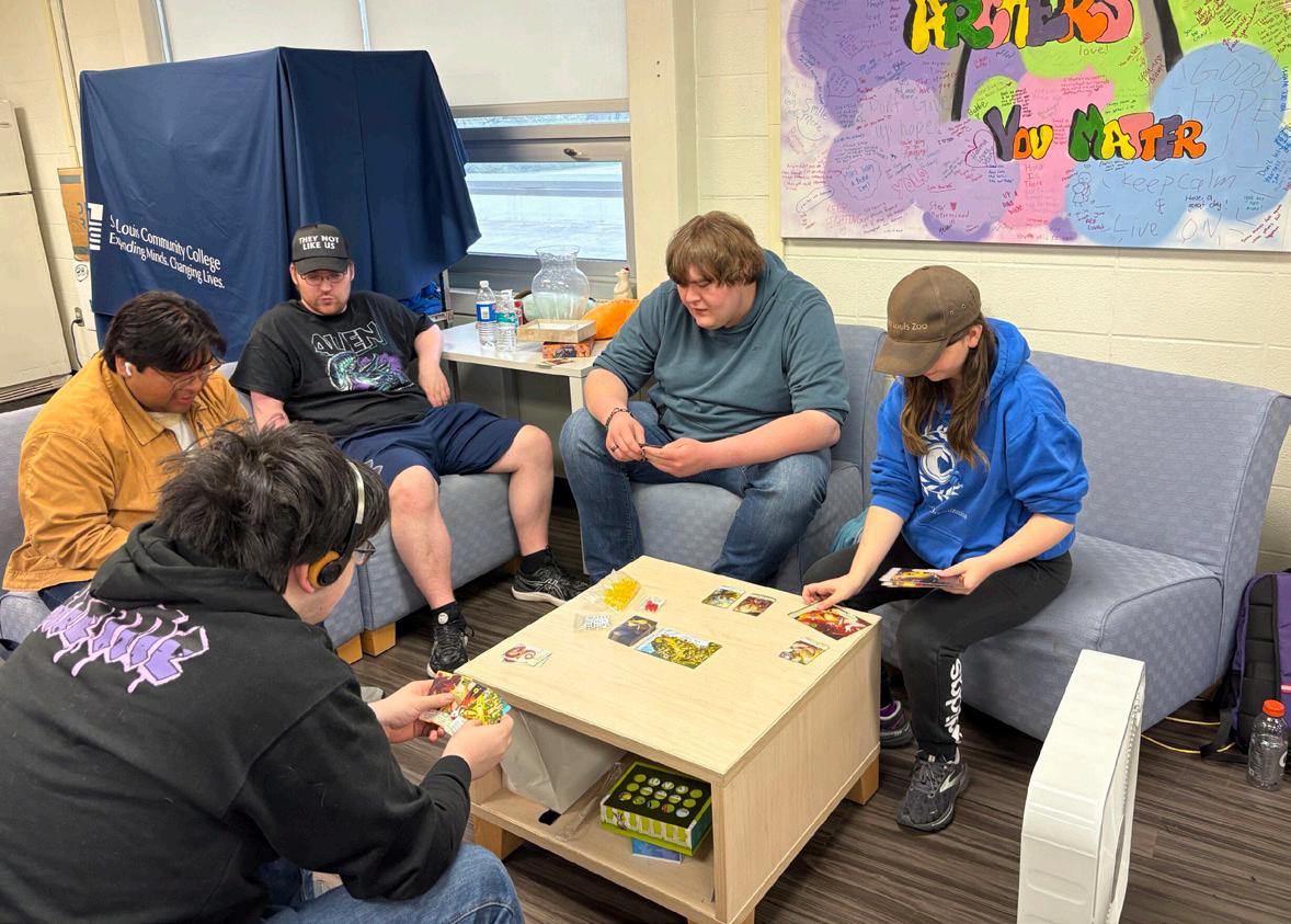 The new facility, housed on the ground floor of the college’s South County campus off Meramec Bottom Road near Arnold, took about six months to construct and cost a little over the $850,000 budget it was allotted. The 1,900-square-foot eSports space, formerly occupied by the building’s multipurpose room, features strategizing areas and stateof-the-art equipment, including 18 PCs and gaming systems like the PlayStation 5 and Nintendo Switch.