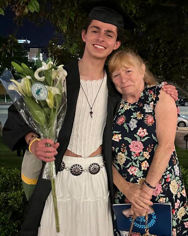AT LEFT: Graduate Tony Sambo poses for a picture with his girlfriend after walking the 2025 commencement ceremony