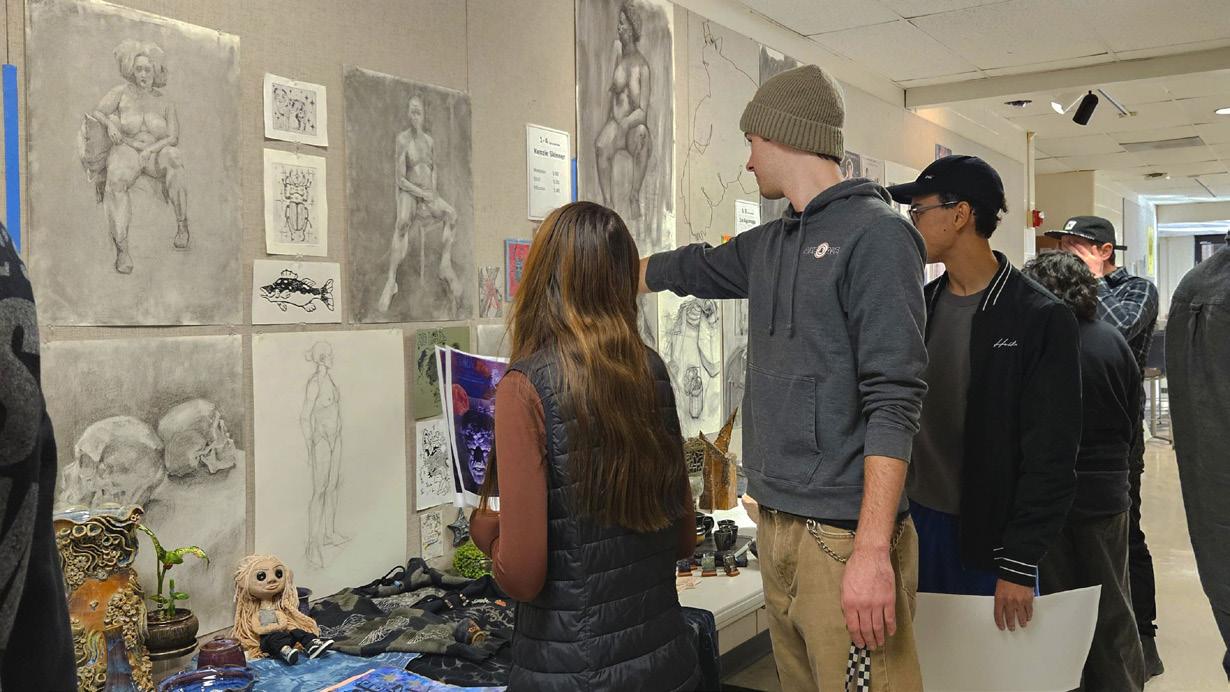Booths line the hallways of the Humanities East building with tables and walls filled with artwork ranging from ceramics, prints, sculpture, to multimedia and traditional art. On Oct. 23, STLCC Meramec hosted its annual Portfolio Day, inviting several universities to speak to students and offer them opportunities to continue their art education. Some of these universities were Southern Illinois University Edwardsville, Maryville University, University of Missouri Saint Louis, Kansas City Art Institute, University of Missouri, Webster University, Milwaukee
